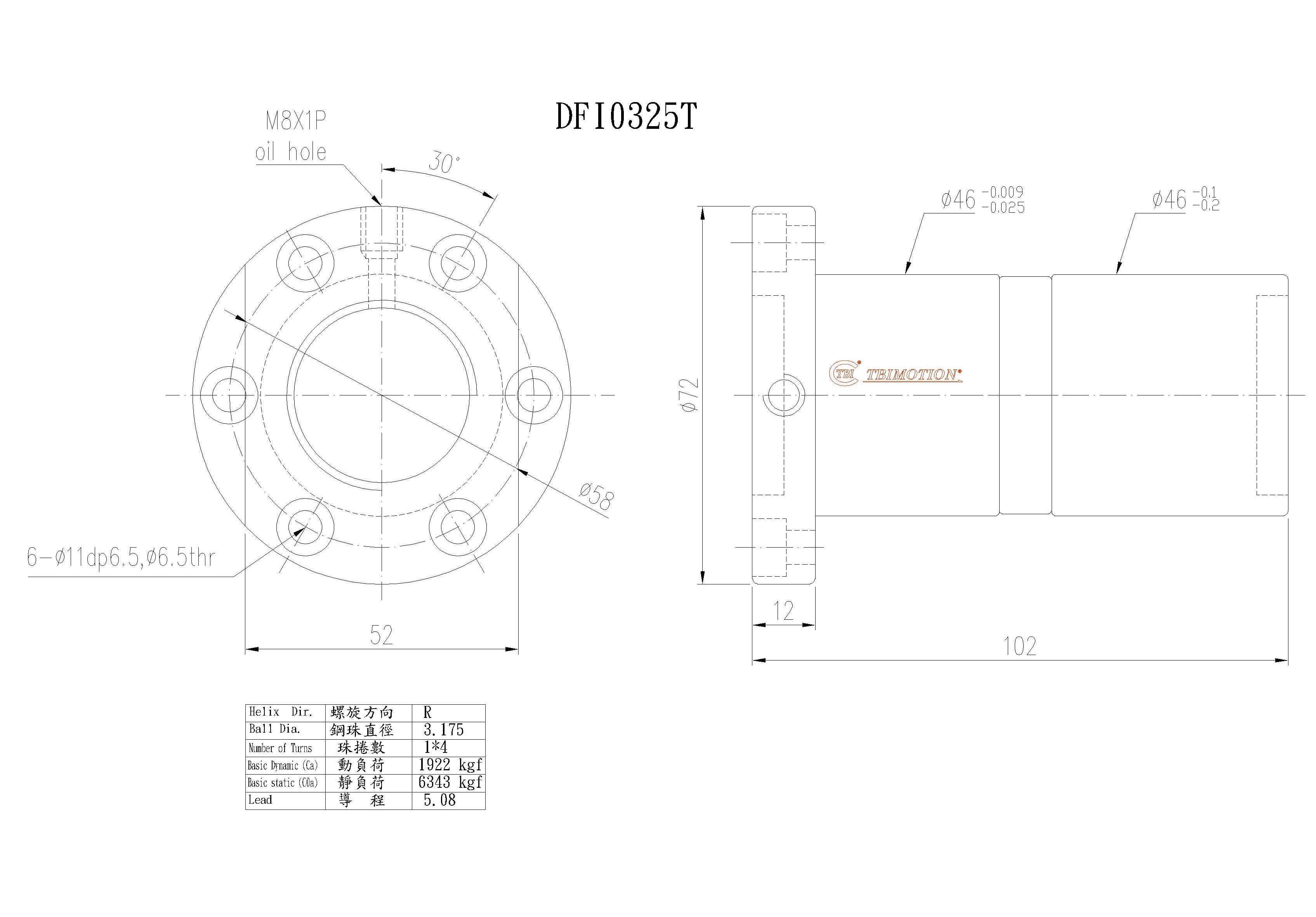 tbi滾珠絲桿DFI3204、DFI325T螺母尺寸圖示: