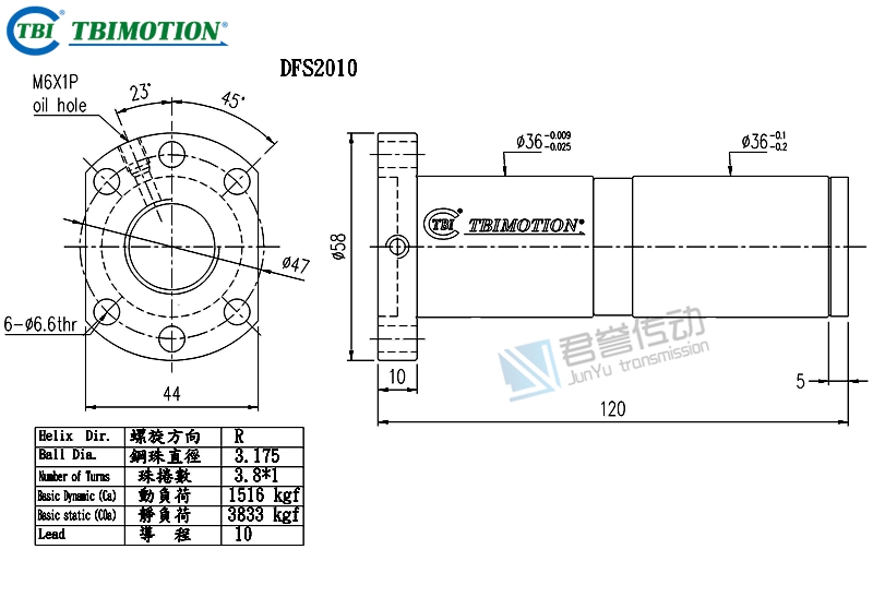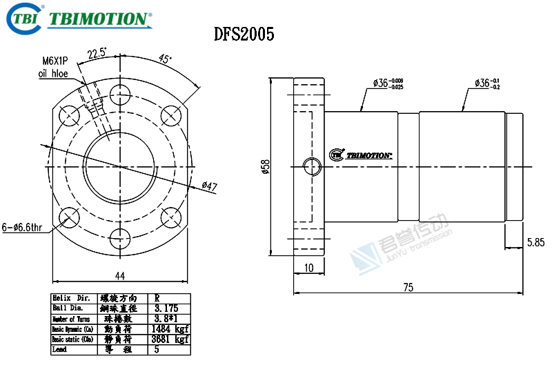 tbi滾珠絲桿螺母DFSR02005T1D,絲桿直徑20,導(dǎo)程10,珠圈數(shù)3.8*1,珠直徑3.175,雙切邊雙螺母,動(dòng)額定負(fù)荷1516,靜額定負(fù)荷3833,剛性53.