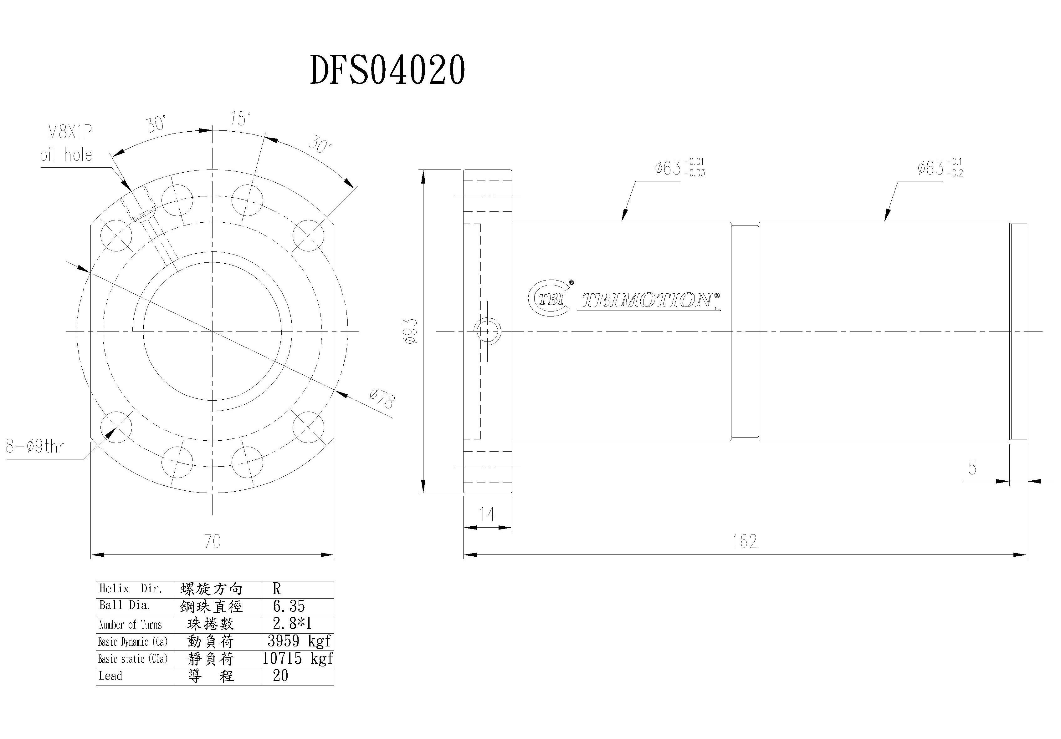 tbi滾珠絲桿DFS4005、DFS4010、DFS4020螺母尺寸圖示: