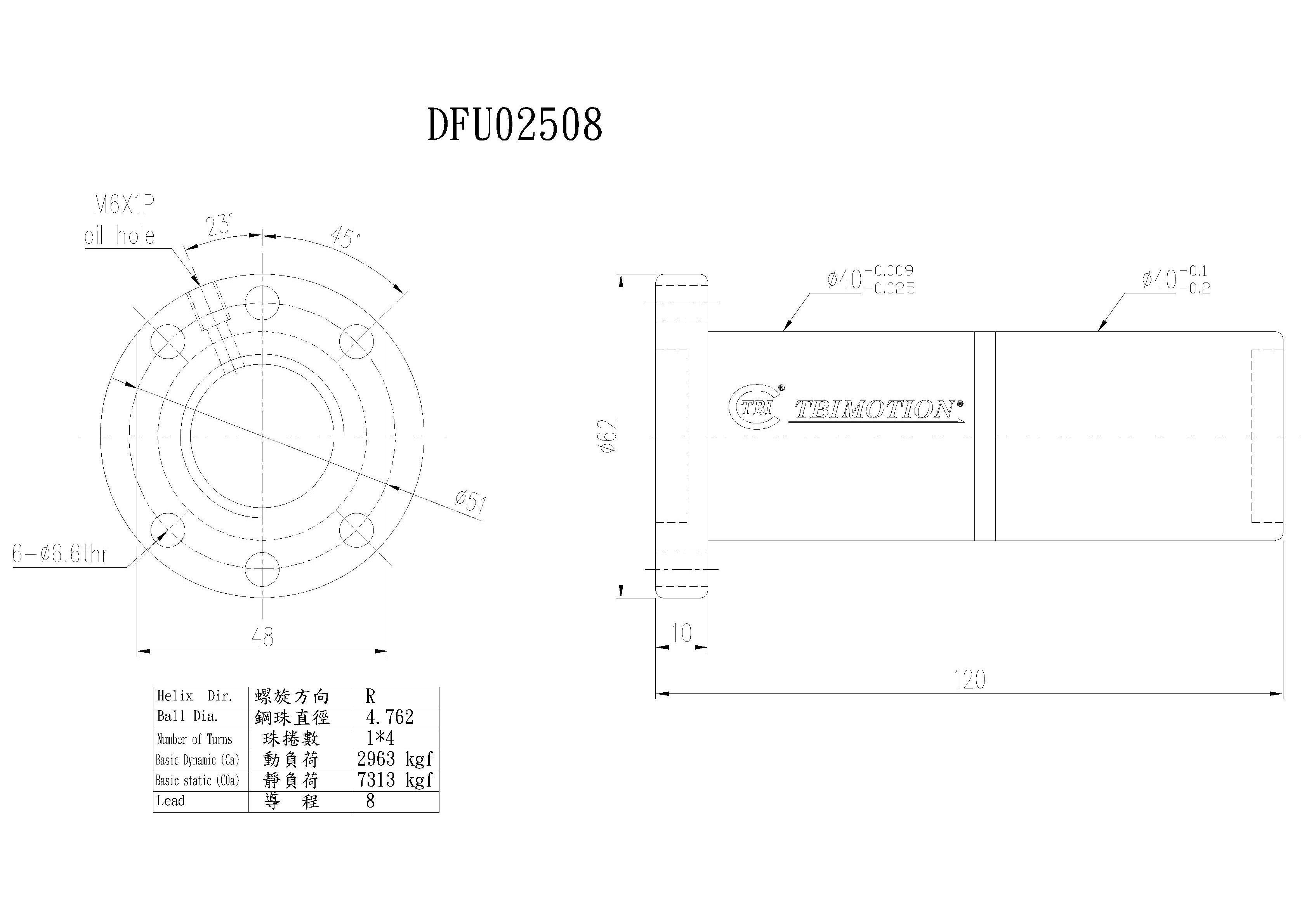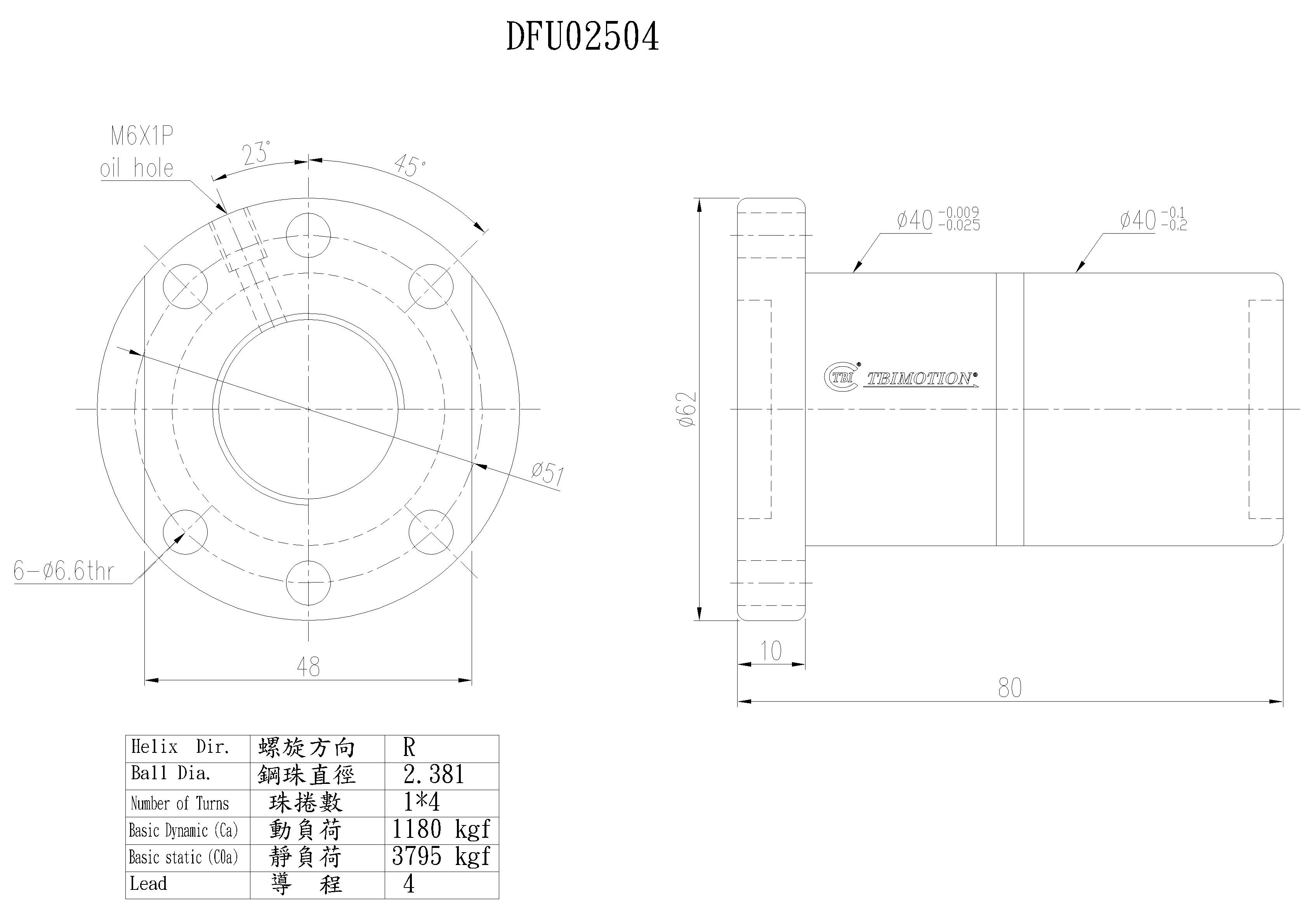 tbi滾珠絲桿DFU2504、DFU2506、DFU2508螺母尺寸圖示: