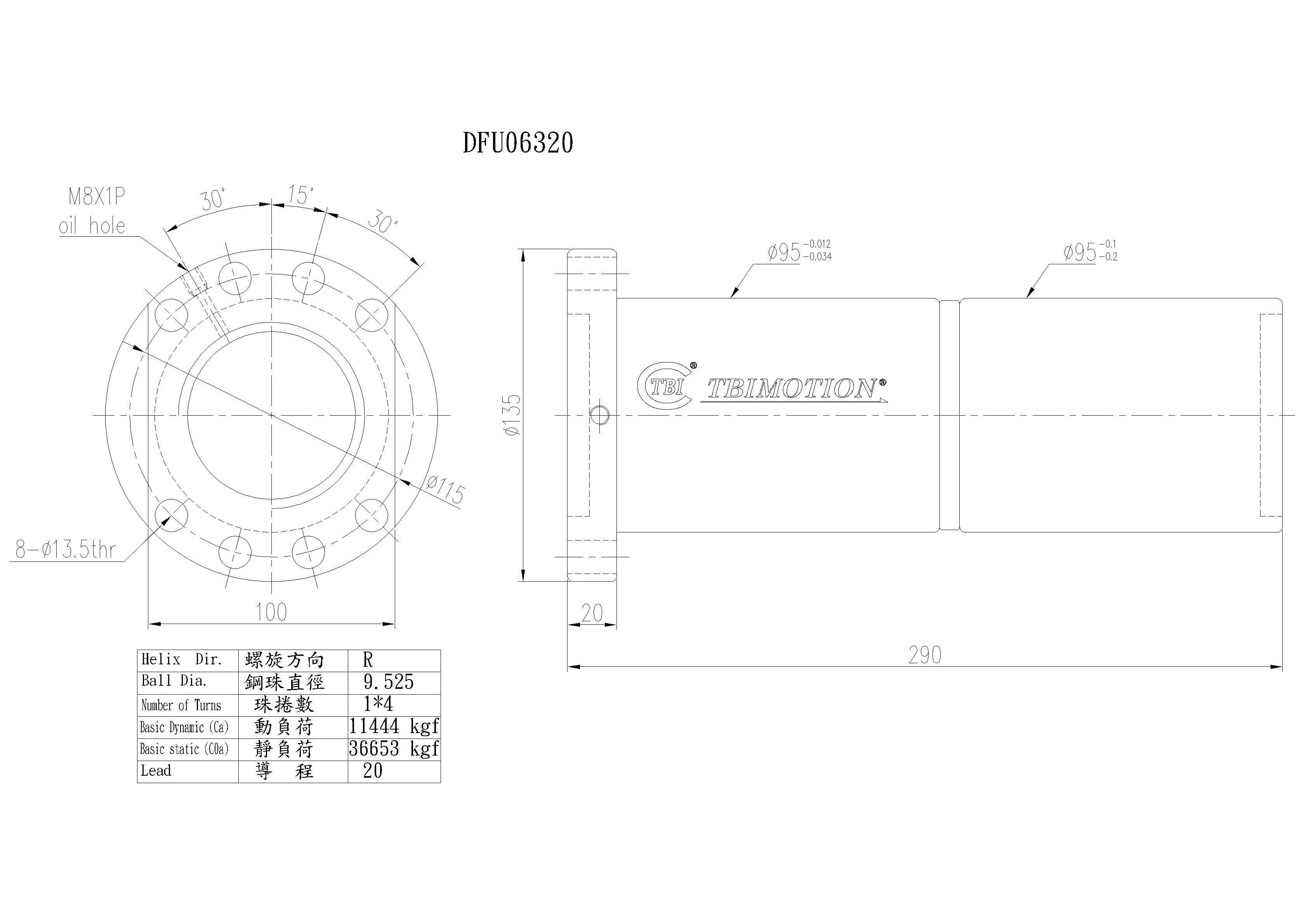 tbi滾珠絲桿螺母DFUR06320T4D,絲桿直徑63,導(dǎo)程20,珠圈數(shù)1*4,珠直徑9.525,雙切邊雙螺母,動(dòng)額定負(fù)荷11444,靜額定負(fù)荷36653,剛性152.