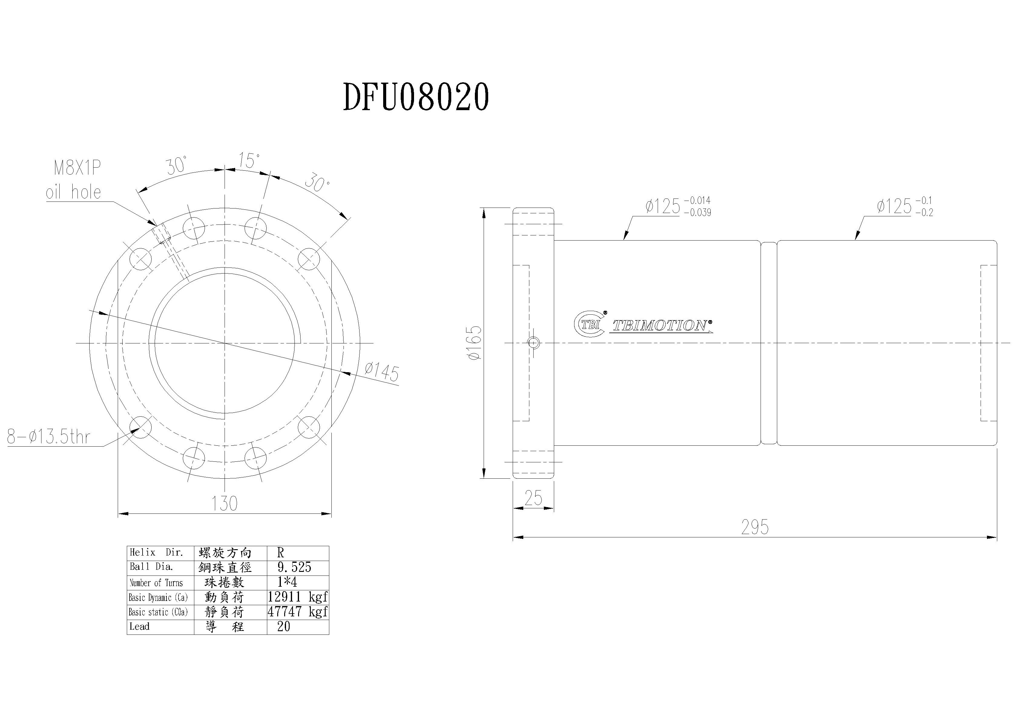 新聞中心ews Centertbi滾珠絲桿DFU8020螺母尺寸圖示: