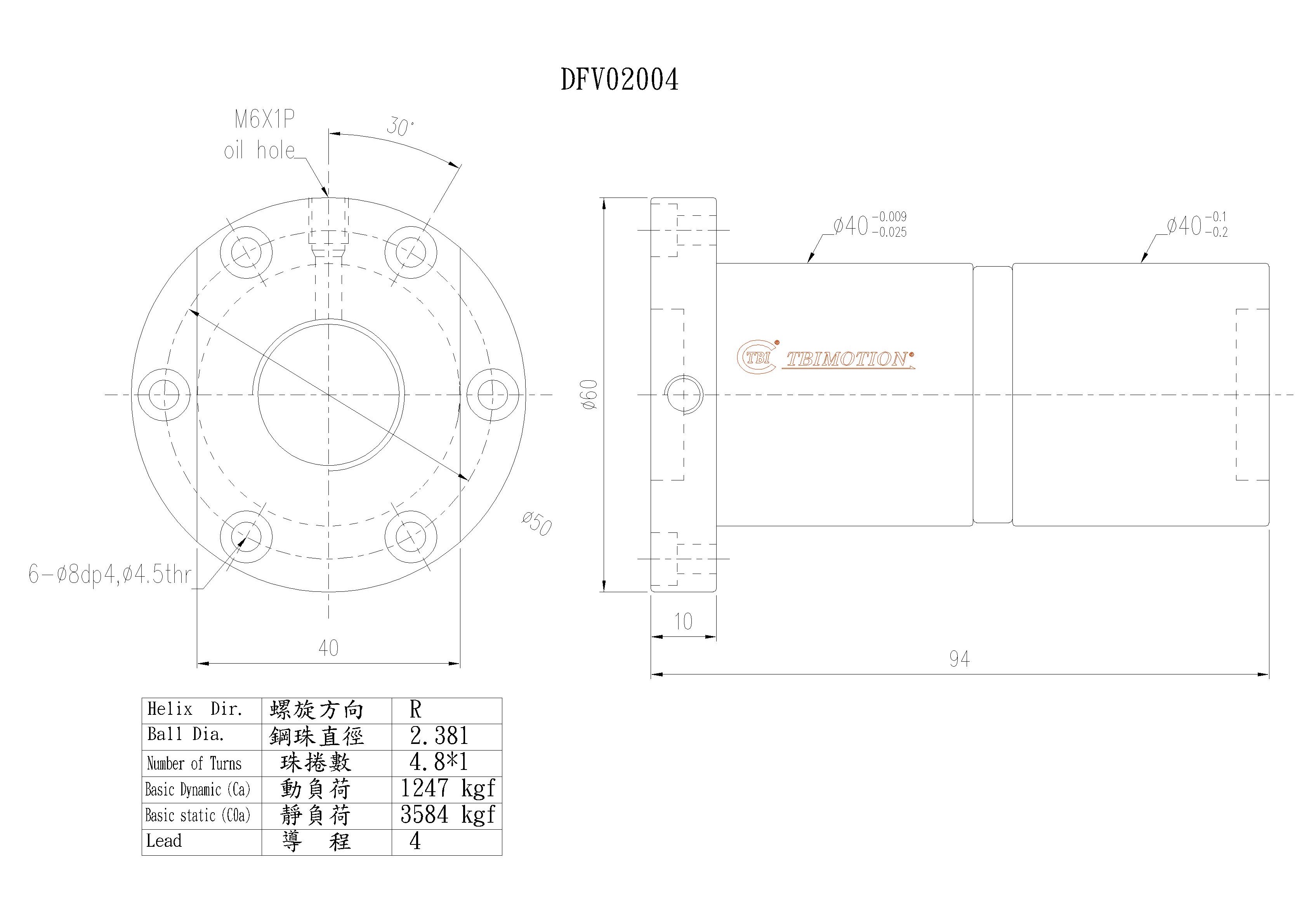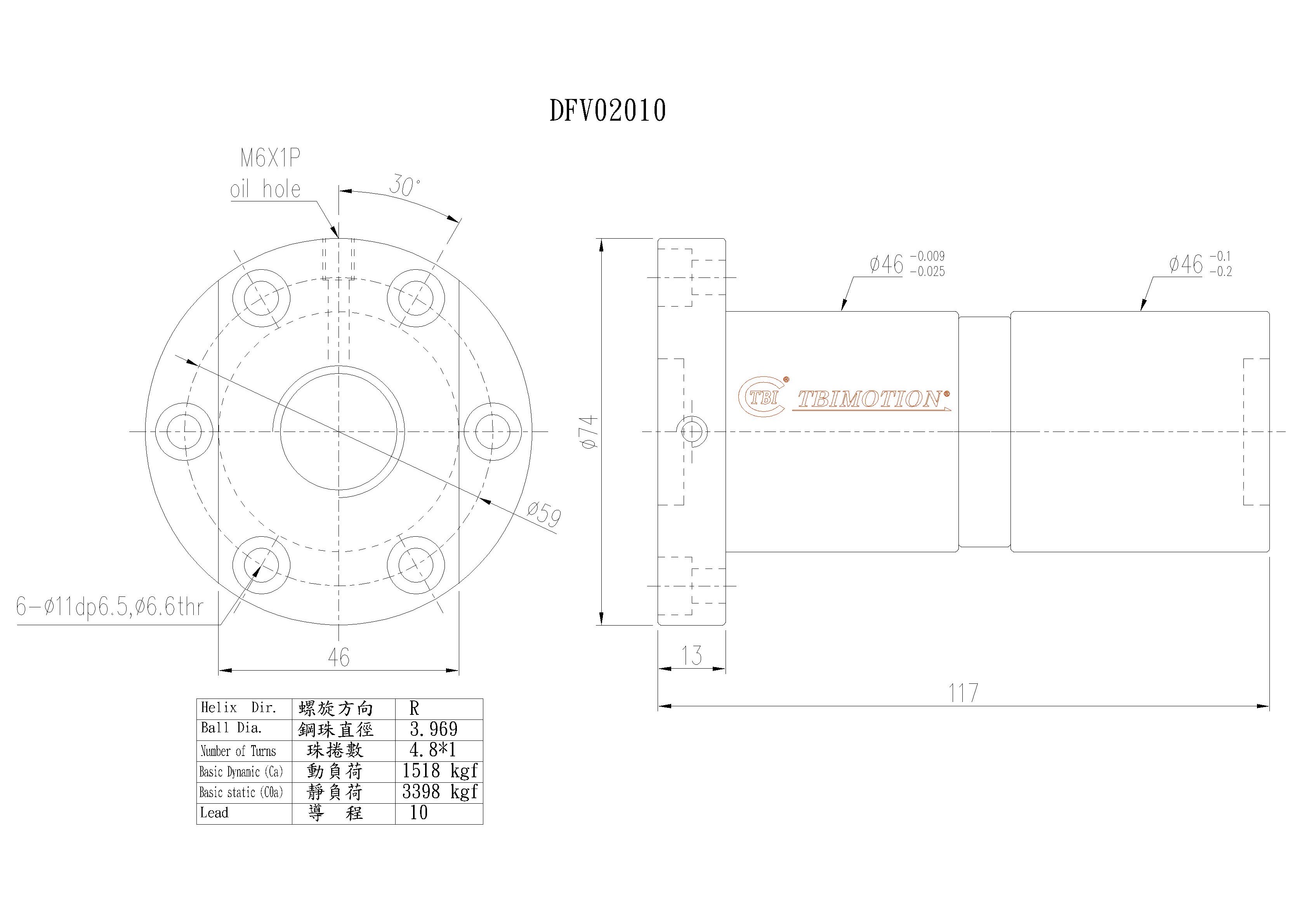 tbi滾珠絲桿DFV2004、DFV2010螺母尺寸圖示: