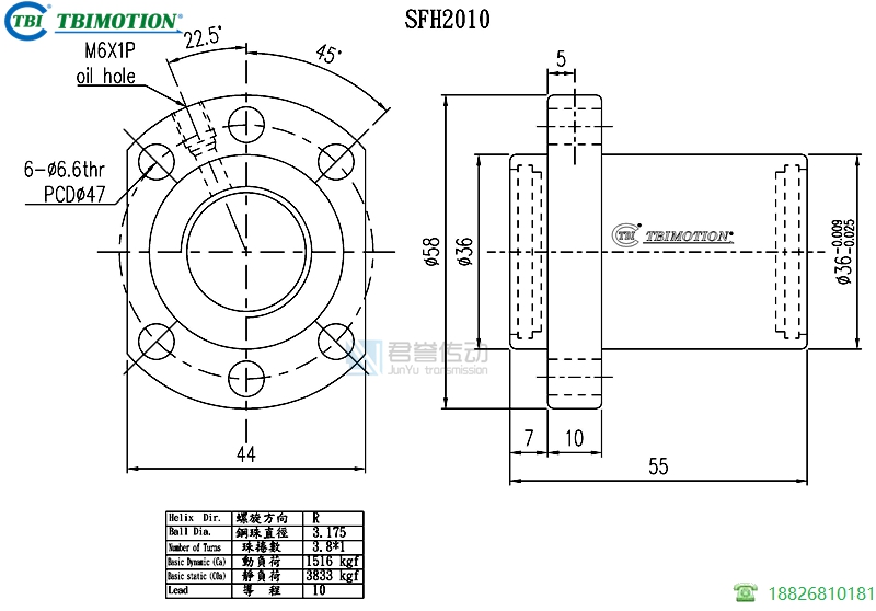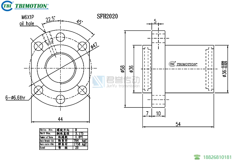 tbi滾珠絲桿螺母SFHR02010C1D,絲桿直徑20,導(dǎo)程10,珠圈數(shù)3.8*1,珠直徑3.175,動(dòng)額定負(fù)荷1516靜額定負(fù)荷3833,剛性40。