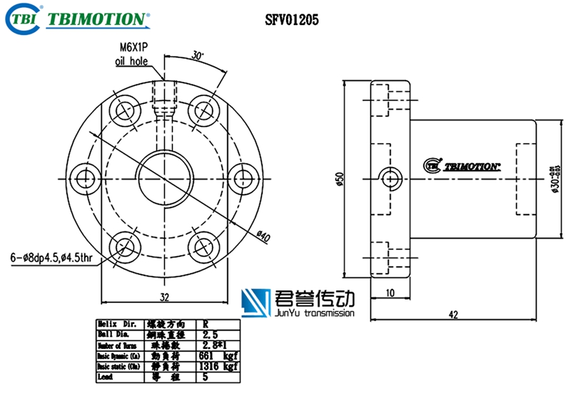 tbi滾珠絲桿螺母SFVR01205B1D,SFNIR01205B1N,法蘭雙切邊或者全圓,絲桿直徑12,導(dǎo)程05,珠圈數(shù)2.8*1,珠直徑2.5,動(dòng)額定負(fù)荷661,靜額定負(fù)荷1316,剛性19。