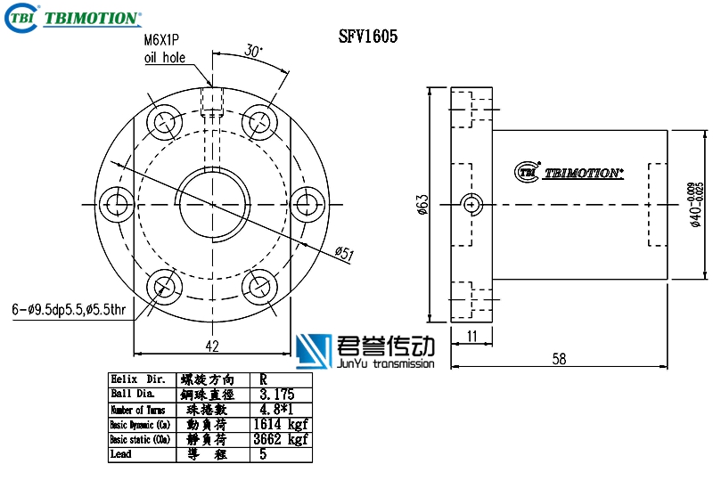 tbi滾珠絲桿螺母SFVR01605D1D,SFNIR01605D1N,法蘭雙切邊或者全圓,絲桿直徑16,導(dǎo)程05,珠圈數(shù)4.8*1,珠直徑3.175,動(dòng)額定負(fù)荷1914,靜額定負(fù)荷3662,剛性40。