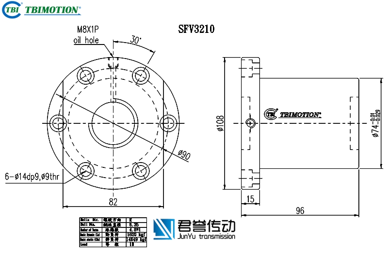 tbi滾珠絲桿螺母SFVR03208D1D,SFNIR03208D1N,法蘭雙切邊或者全圓,絲桿直徑32,導(dǎo)程08,珠圈數(shù)4.8*1,珠直徑4.762,動額定負(fù)荷3962,靜額定負(fù)荷11547,剛性74。