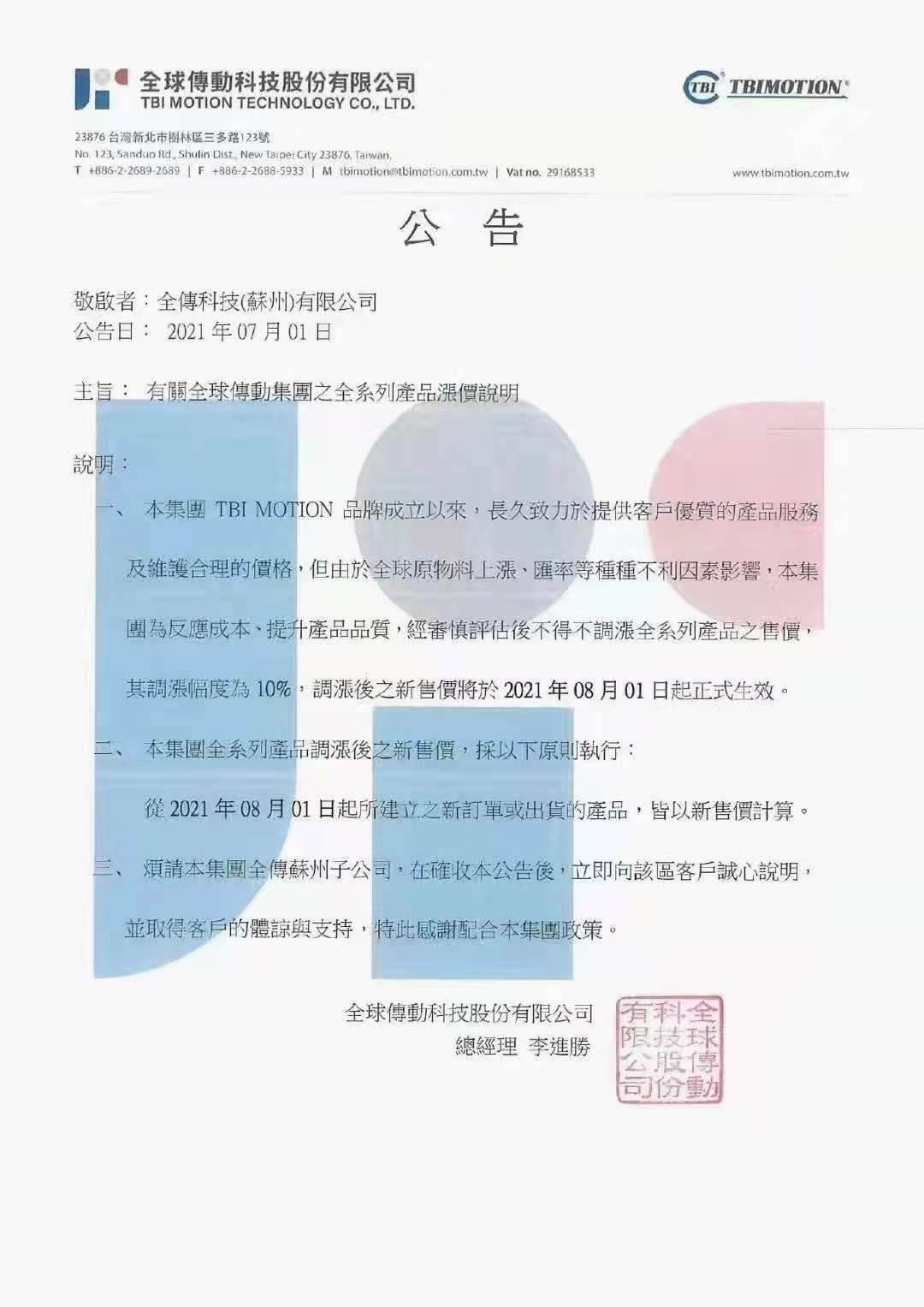 至2021年8月1日起,TBI品牌全線產(chǎn)品價格上漲,漲價通知: