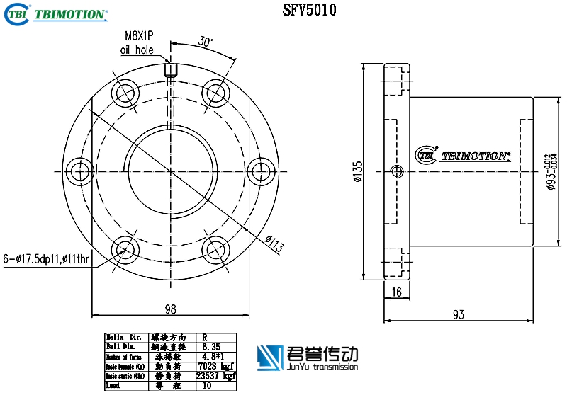 tbi滾珠絲桿螺母SFVR05010D1D,SFNIR05010D1N,法蘭雙切邊或者全圓,絲桿直徑50,導(dǎo)程10,珠圈數(shù)4.8*1,珠直徑6.35,動(dòng)額定負(fù)荷7022,靜額定負(fù)荷23537,剛性106。