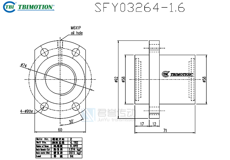 tbi滾珠絲桿SFY3264螺母尺寸圖示: