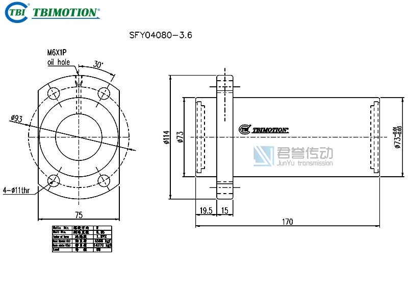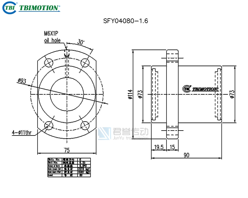 tbi滾珠絲桿SFY4080螺母尺寸圖示:
