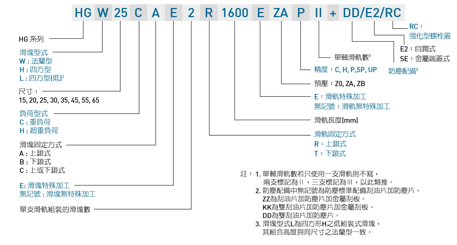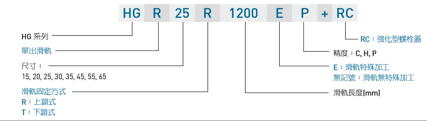 臺(tái)灣上銀直線導(dǎo)軌HG系列導(dǎo)軌型號(hào)解析: