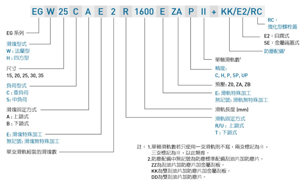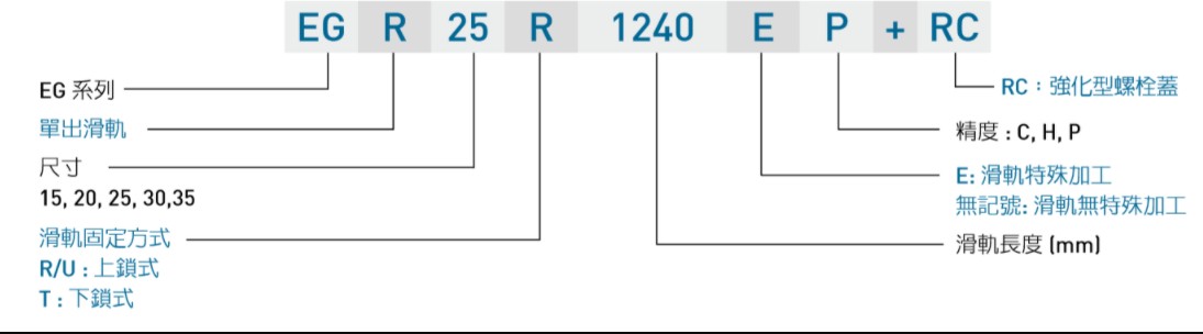 臺灣上銀直線導軌EG系列導軌型號解析: