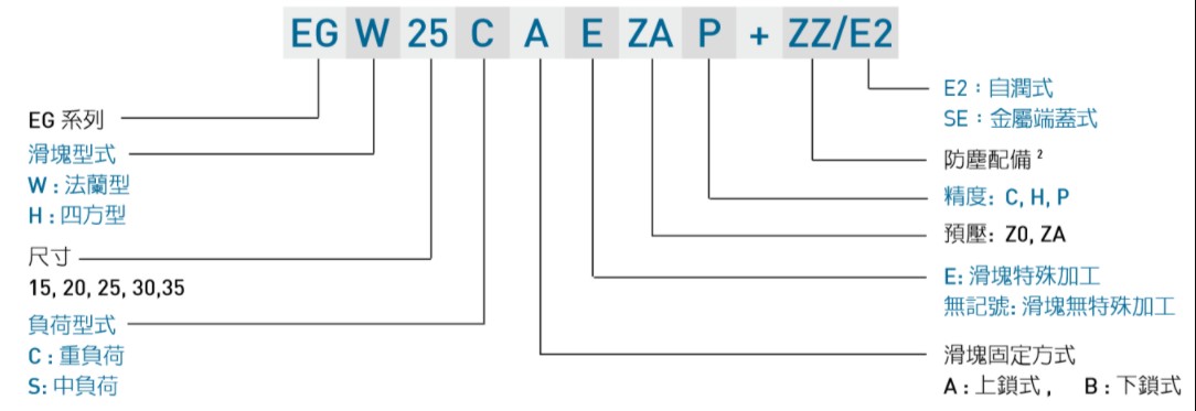 臺灣上銀直線導軌EG系列線性滑塊型號解析: