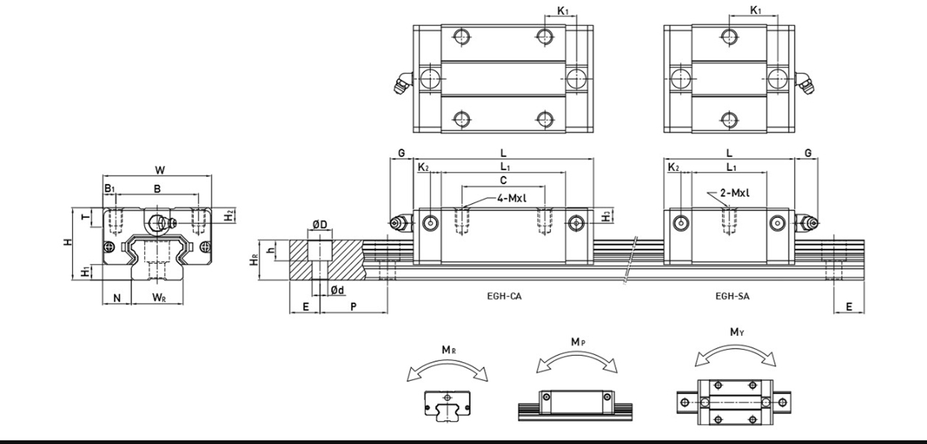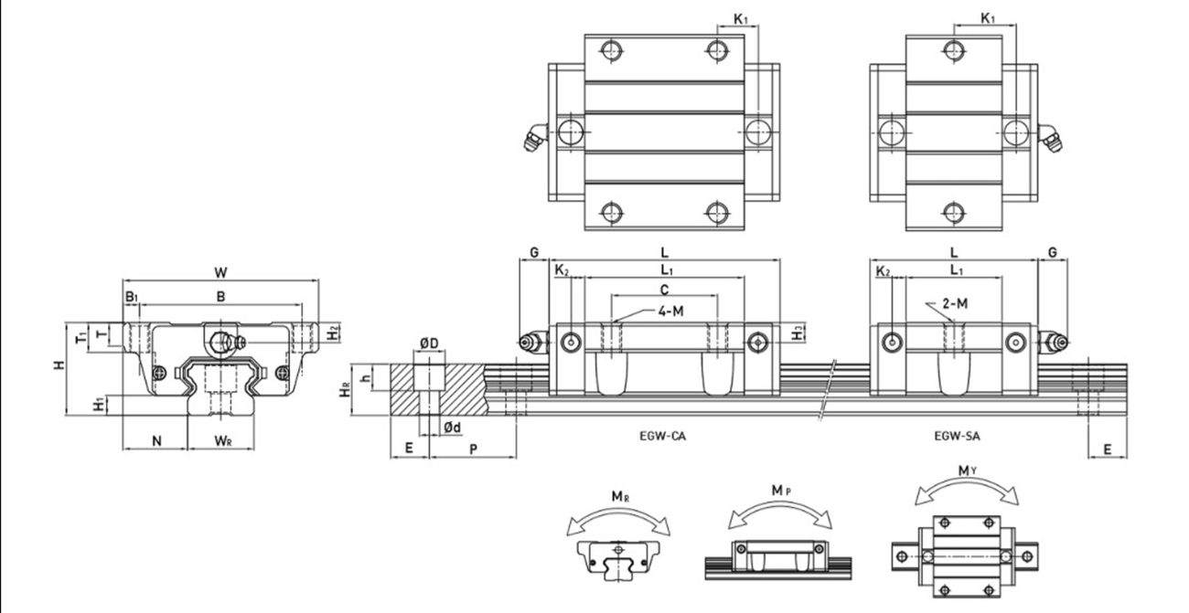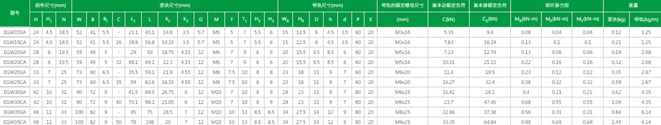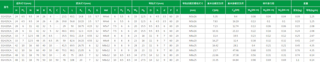 臺灣上銀直線導軌EG系列型號及參數(shù)解析: