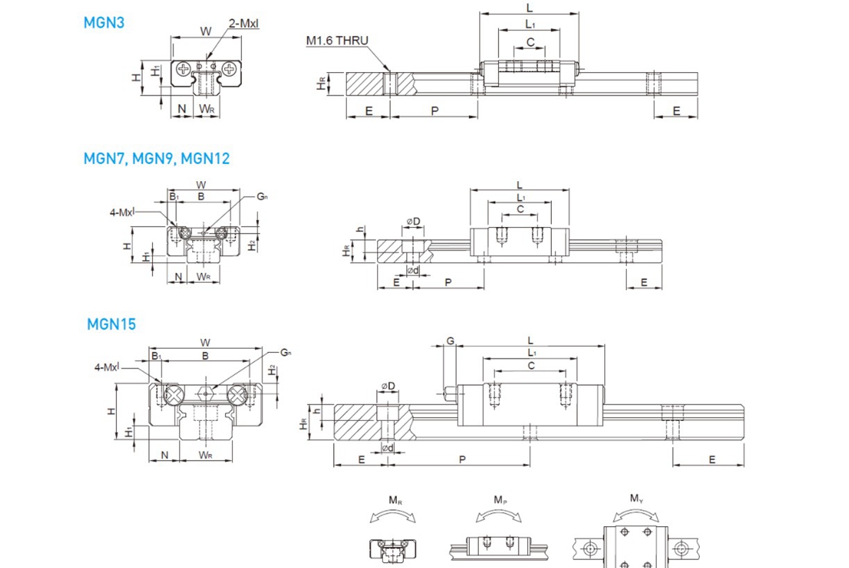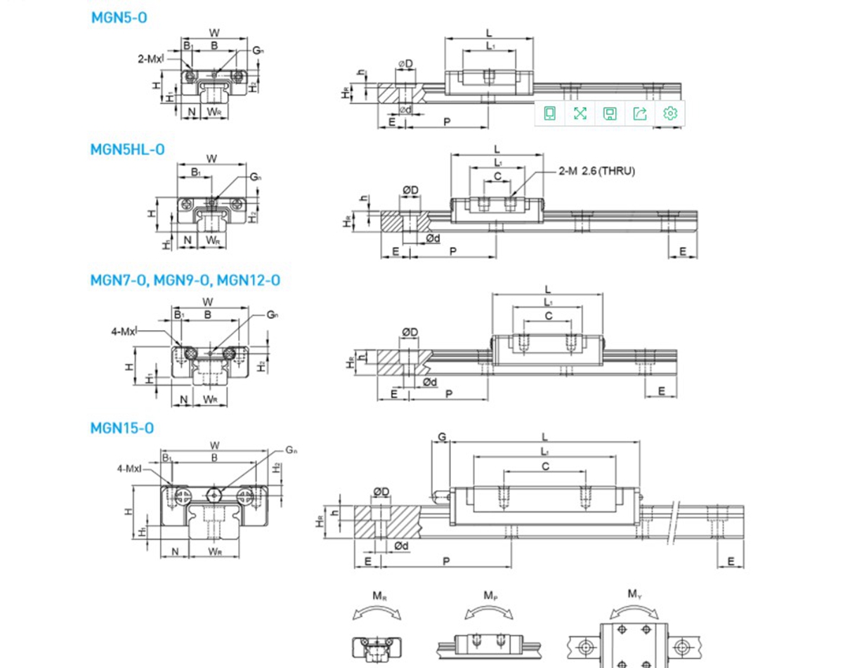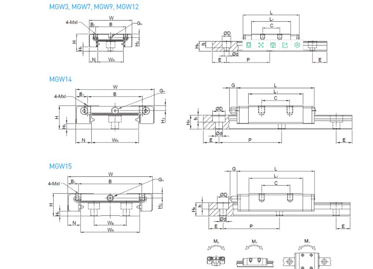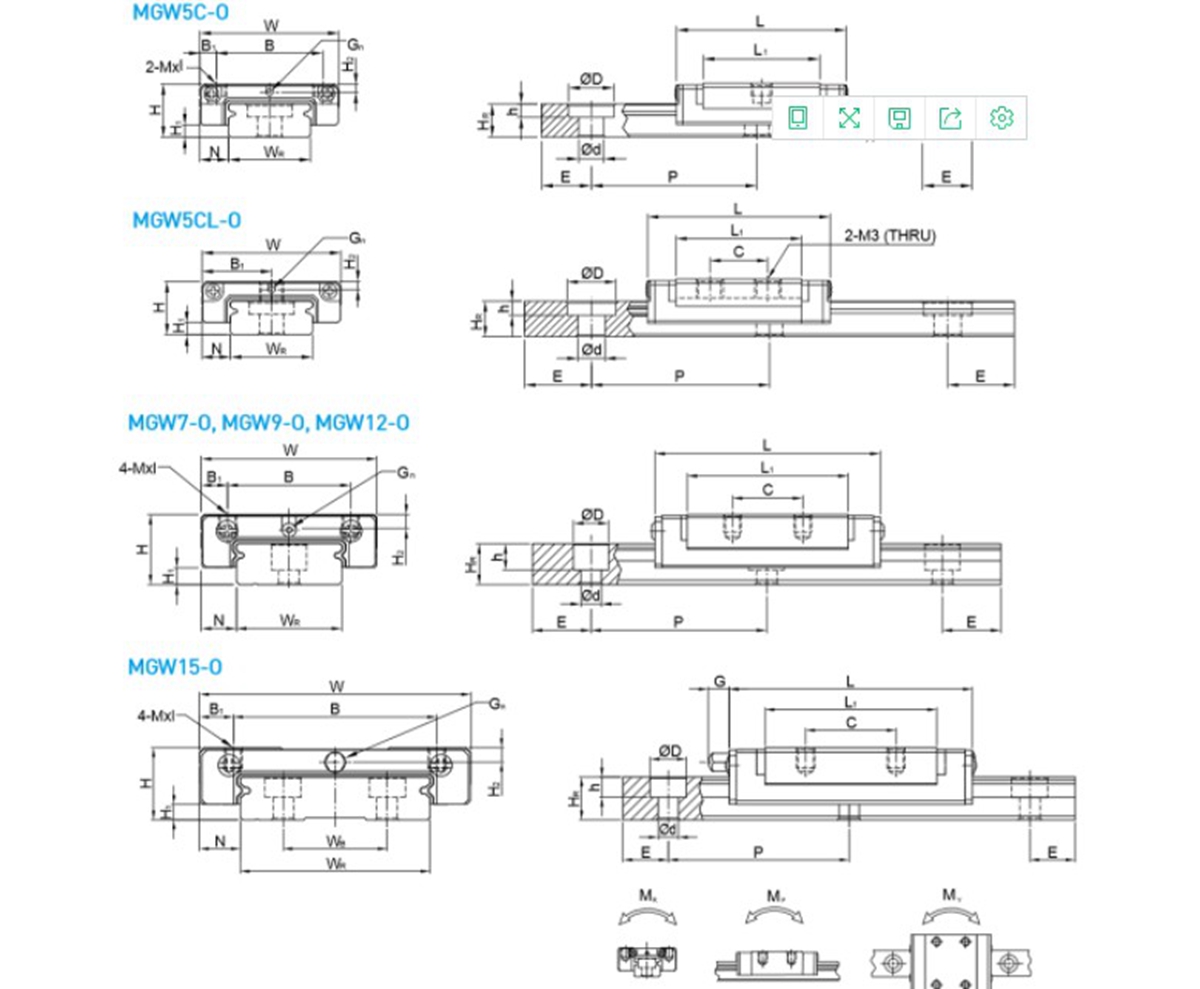 臺(tái)灣上銀直線導(dǎo)軌MG系列導(dǎo)軌型號(hào)解析: