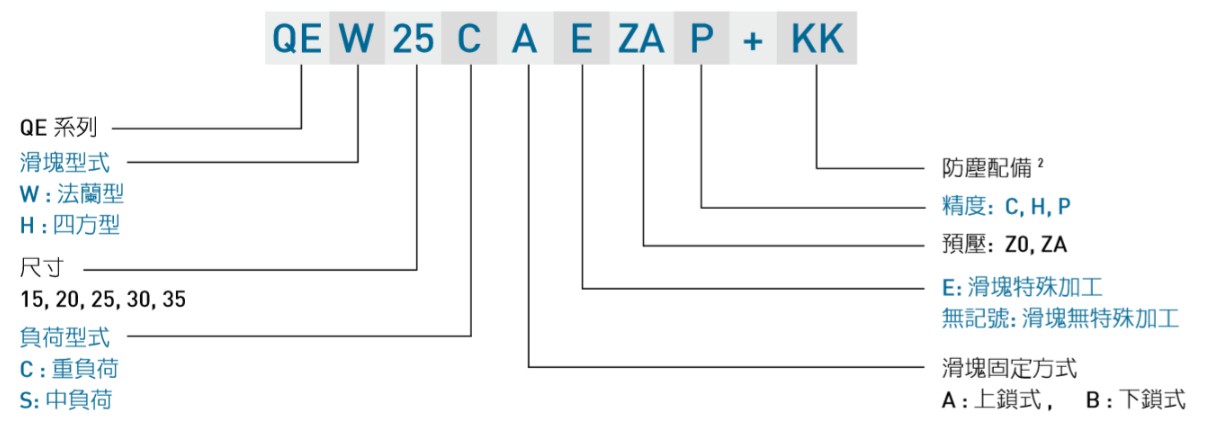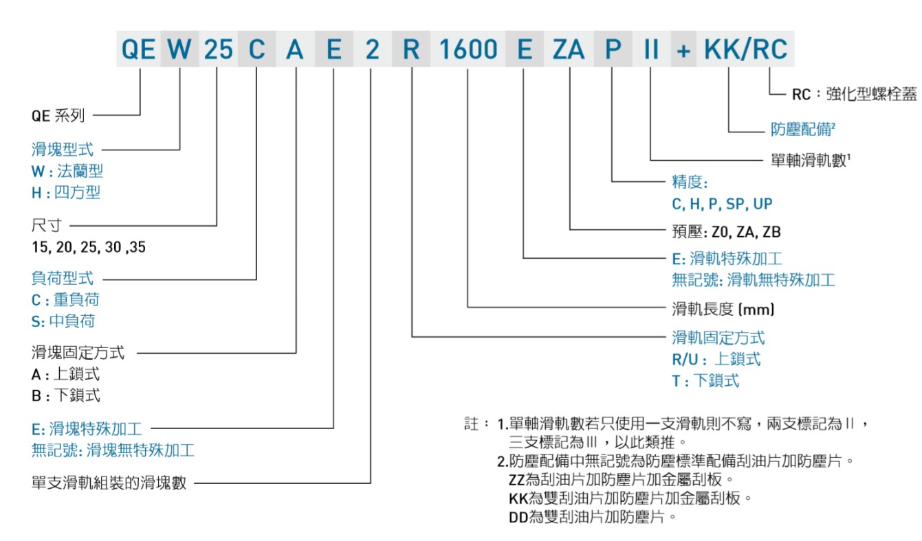 臺灣上銀直線導軌QE系列直線導軌型號解析: