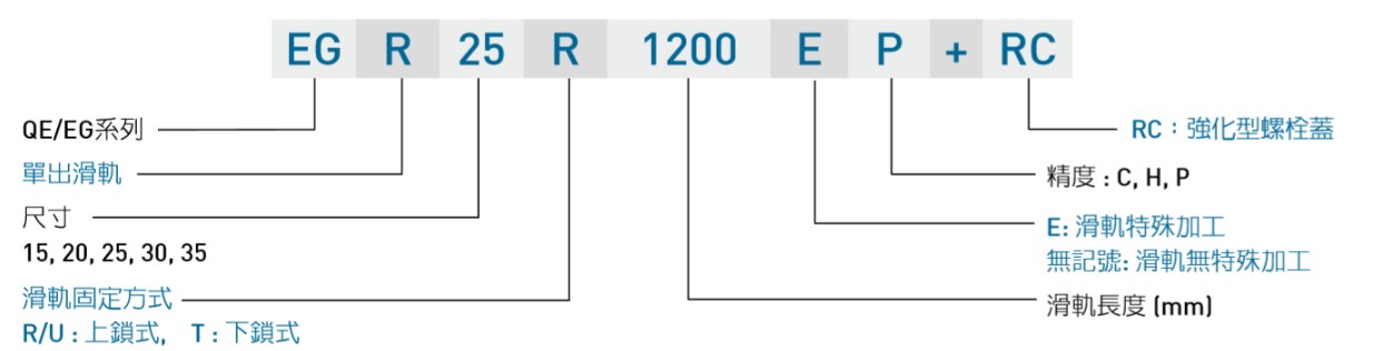 臺灣上銀直線導軌QE系列導軌型號解析:
