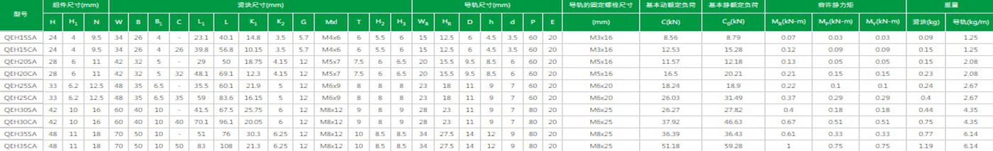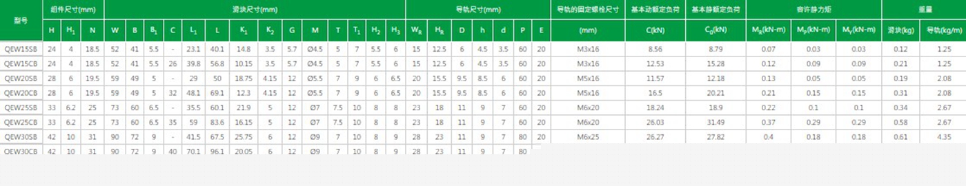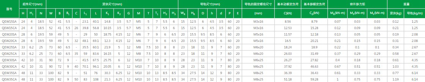 臺灣上銀直線導軌QE系列型號及參數(shù)解析: