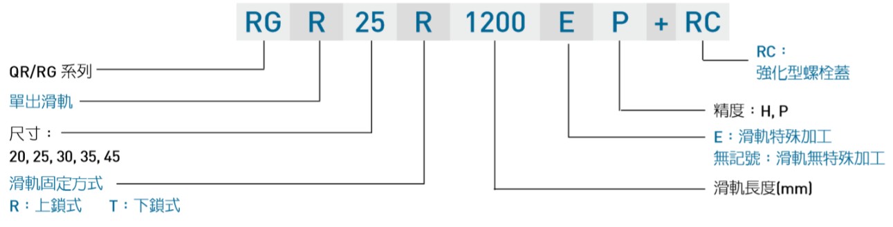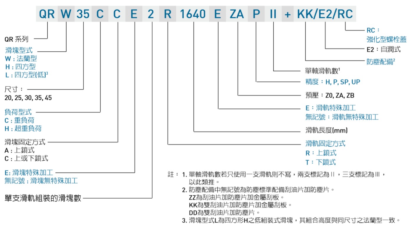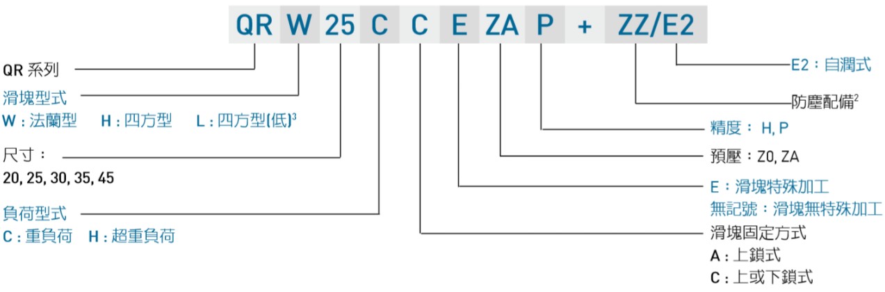 臺(tái)灣上銀直線導(dǎo)軌QR系列線軌型號(hào)解析: