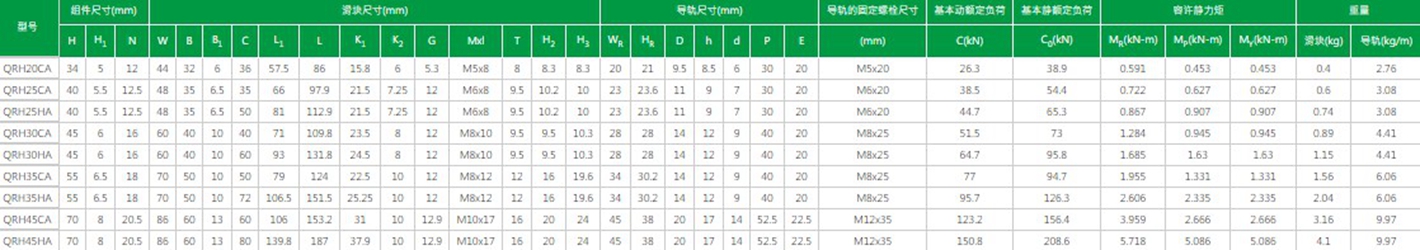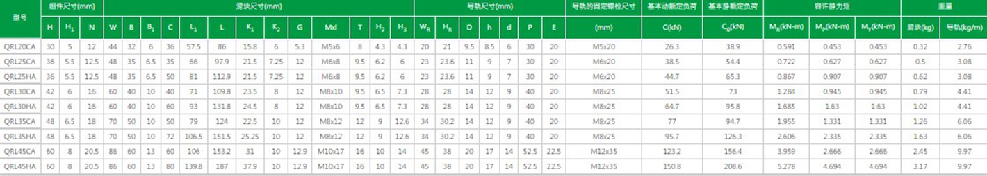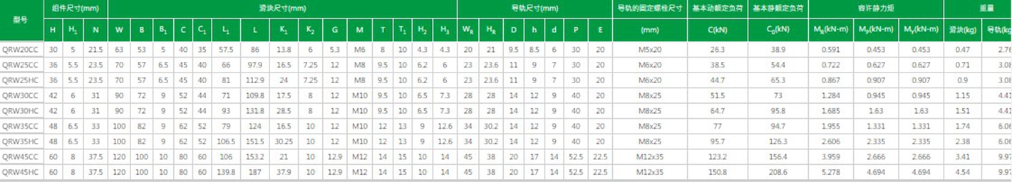 臺(tái)灣上銀直線導(dǎo)軌QR系列直線導(dǎo)軌型號(hào)及參數(shù)解析: