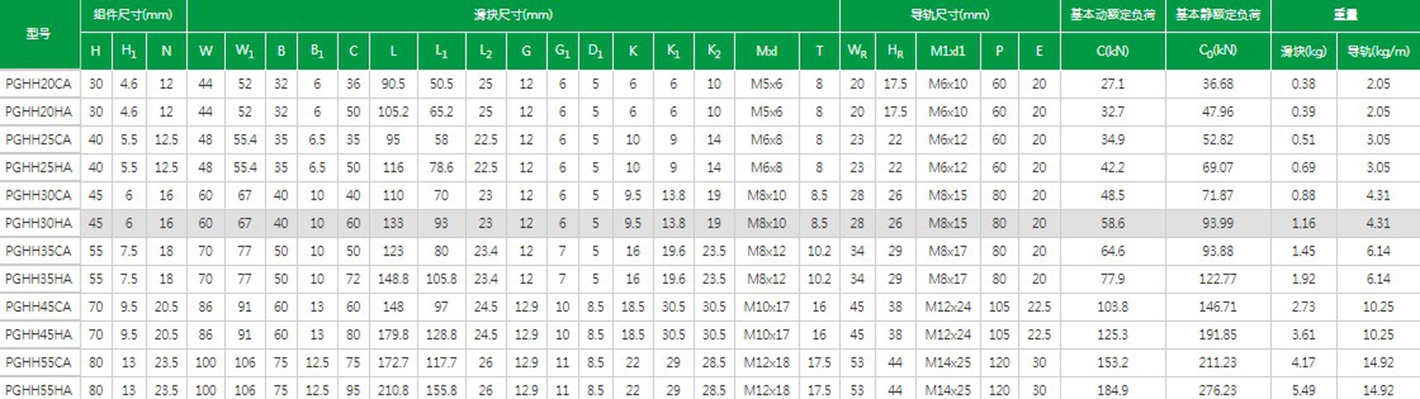 臺灣上銀直線導(dǎo)軌PG系列精密定位直線導(dǎo)軌型號及參數(shù)解析: