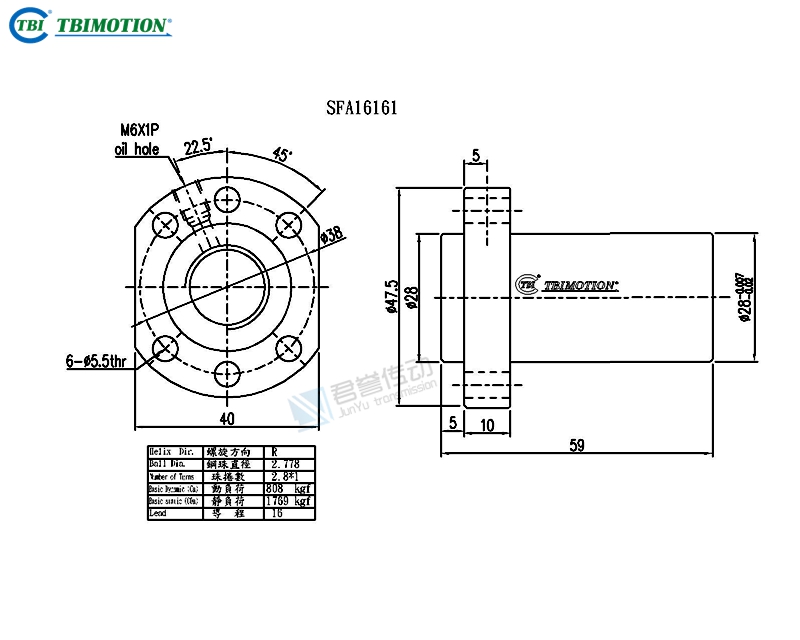 TBI滾珠絲桿SFA16系列 絲桿直徑16,導(dǎo)程5/10/16/20/30,高速靜音型,可完全替代老款SFS和SFH系列。