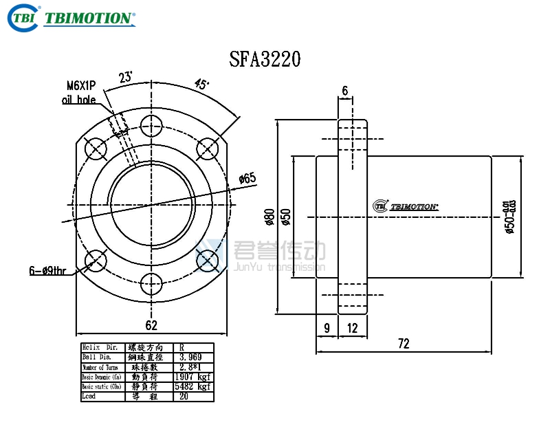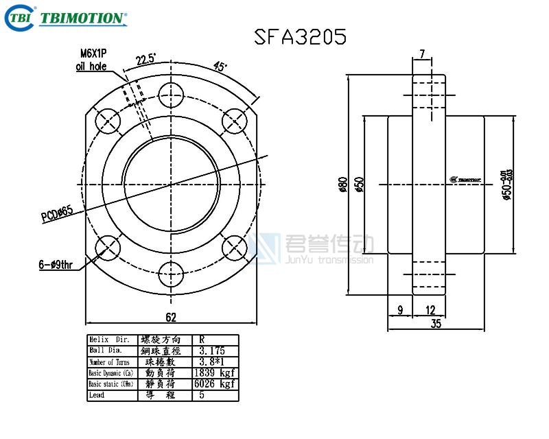 TBI滾珠絲桿螺母SFA3205、SFA3210、SFA3220、SFA3232尺寸圖示: