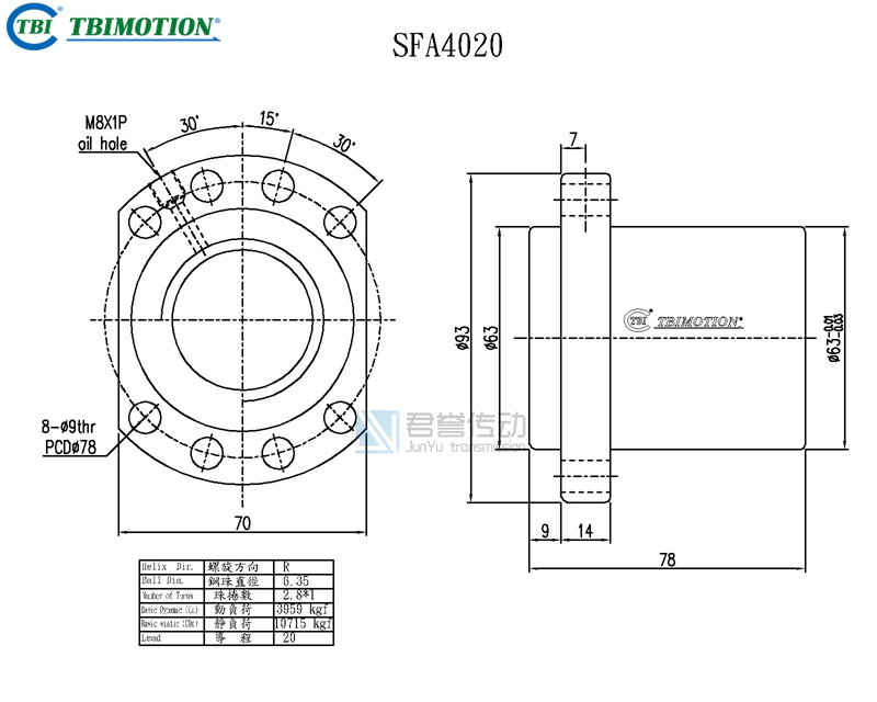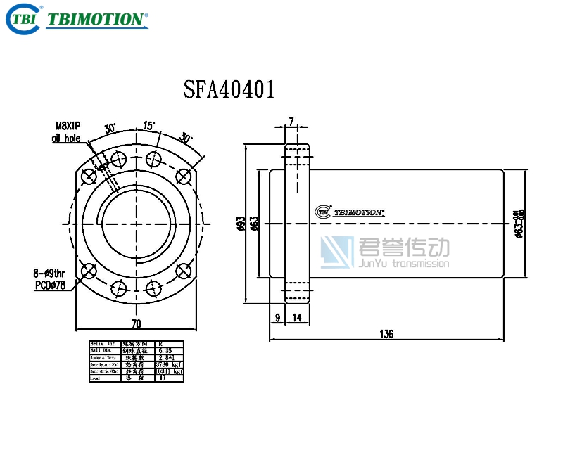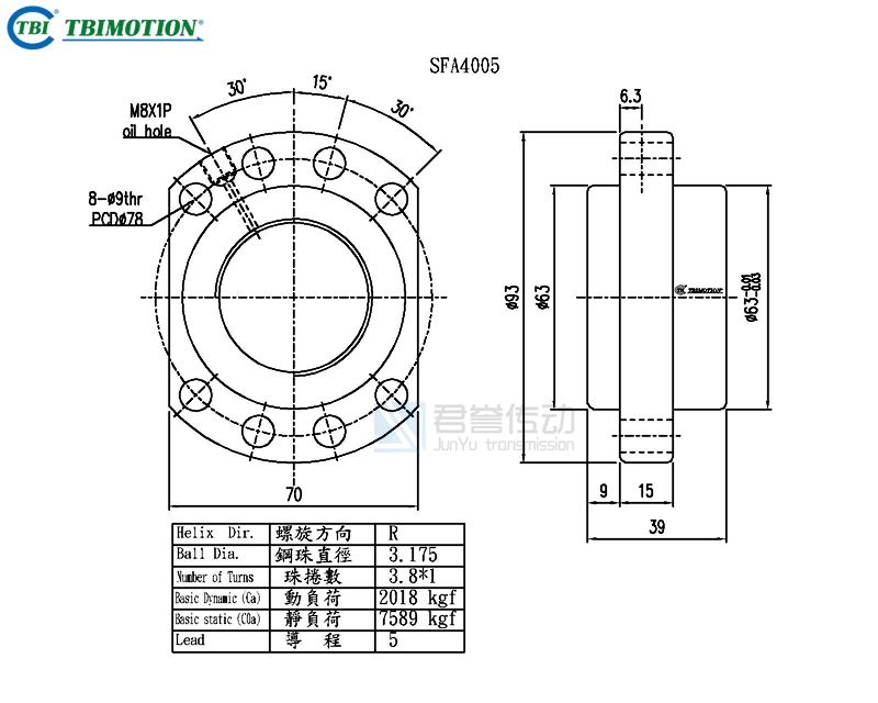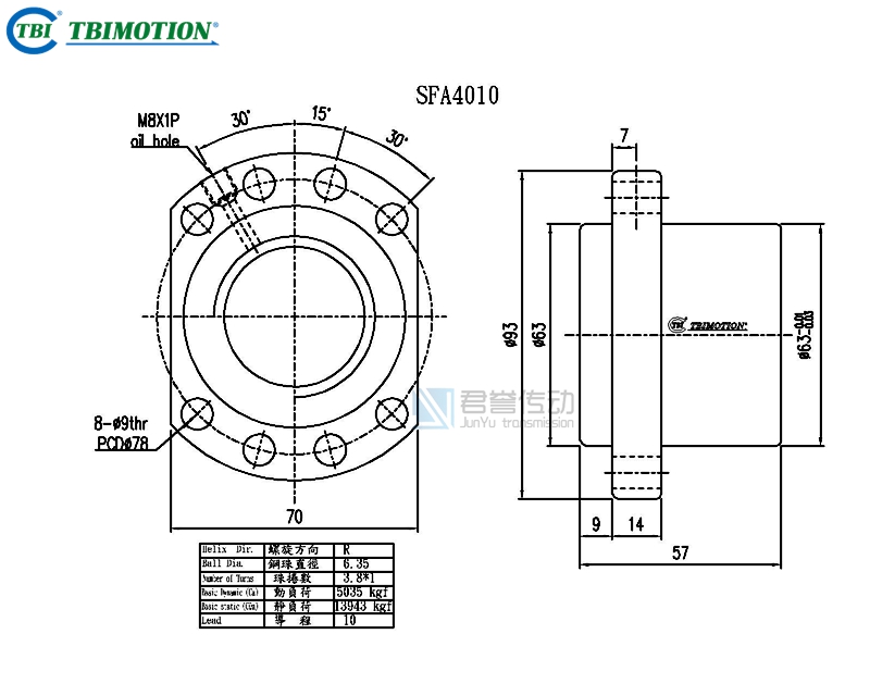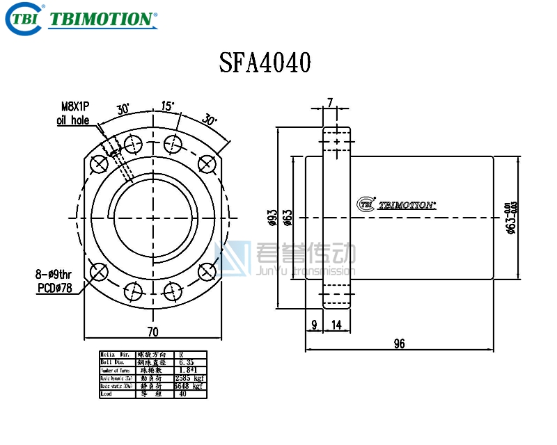新聞中心ews Center臺(tái)灣TBI滾珠絲桿螺母SFA4005、SFA4010、SFA4020、SFA4040尺寸圖示: