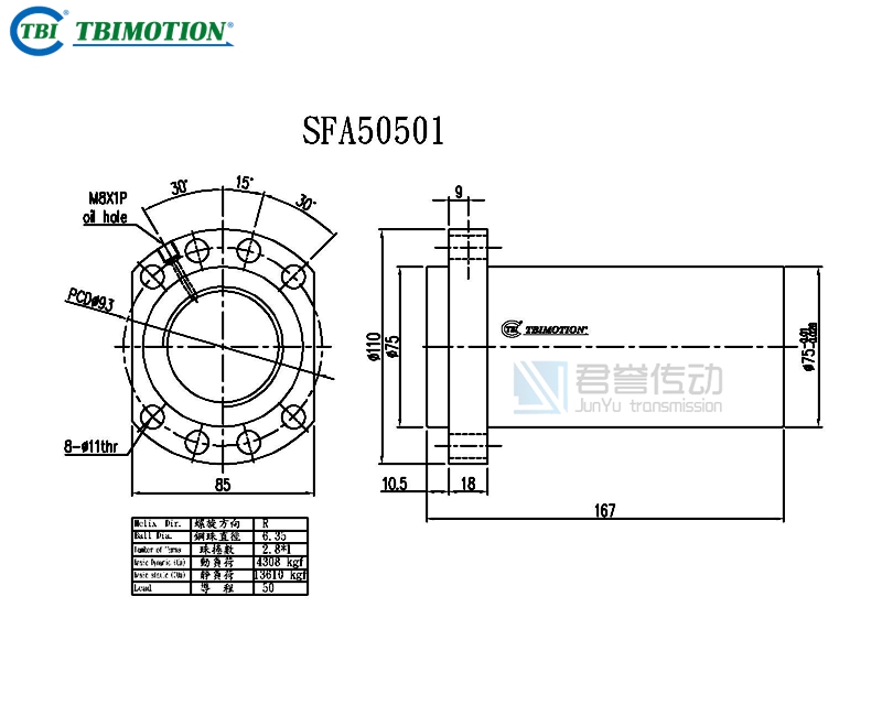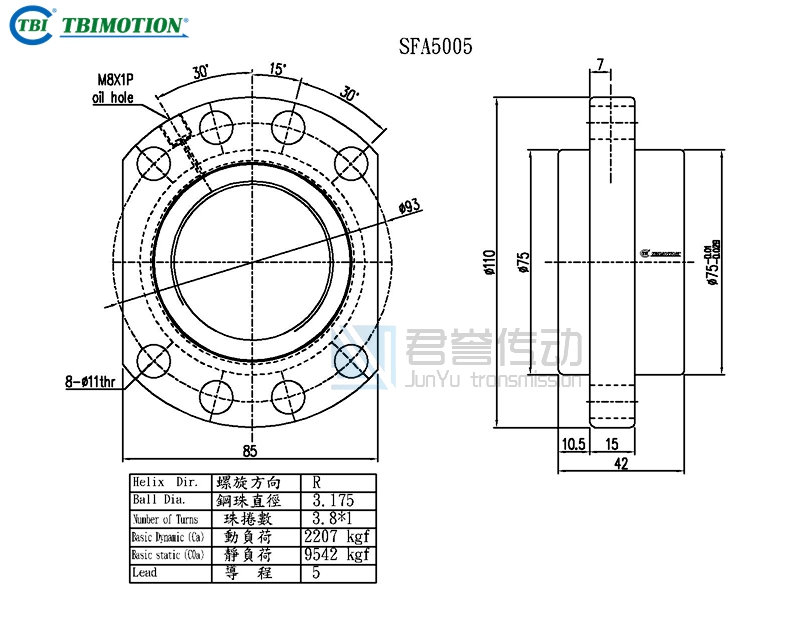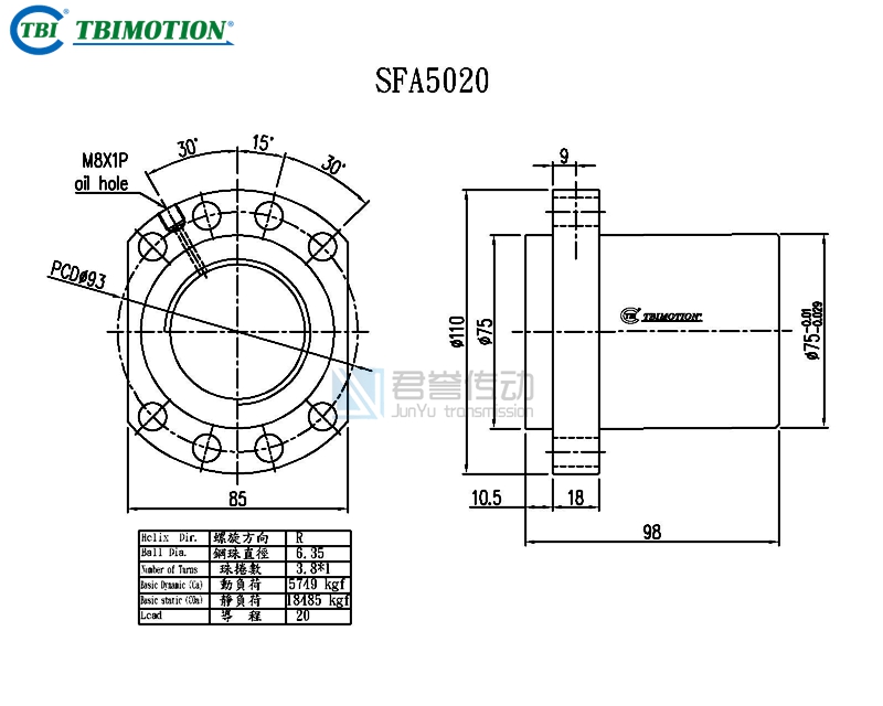 新聞中心ews Center臺灣TBI滾珠絲桿螺母SFA5005、SFA5010、SFA5020、SFA5050尺寸圖示: