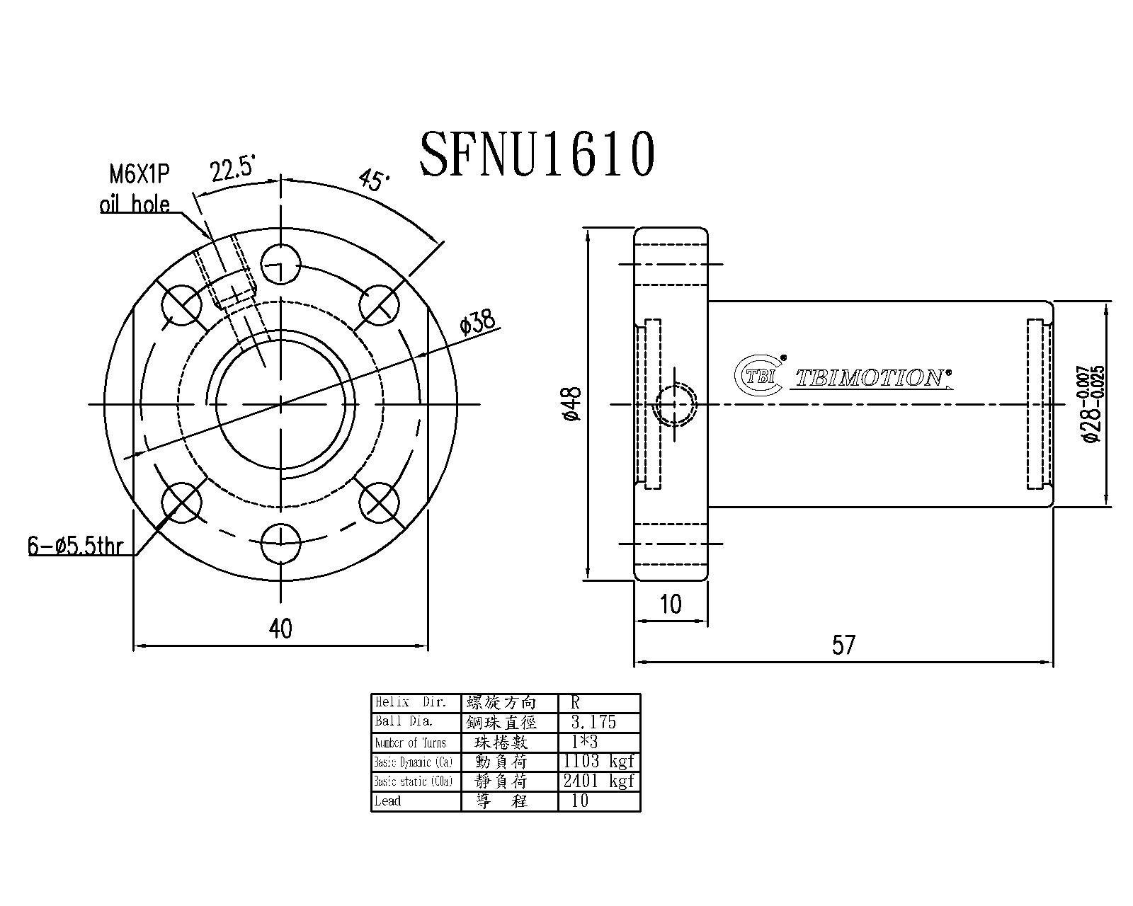 TBI滾珠絲桿螺母SFUNR01610T4D,絲桿直徑16,導(dǎo)程10,珠圈數(shù)4,鋼珠直徑3.175,雙切邊,安裝孔6孔,動(dòng)額定負(fù)荷1103,靜額定負(fù)荷2401,剛性26