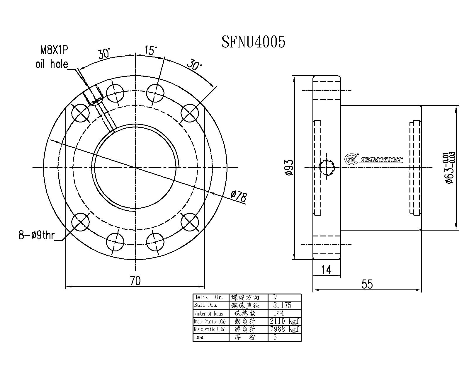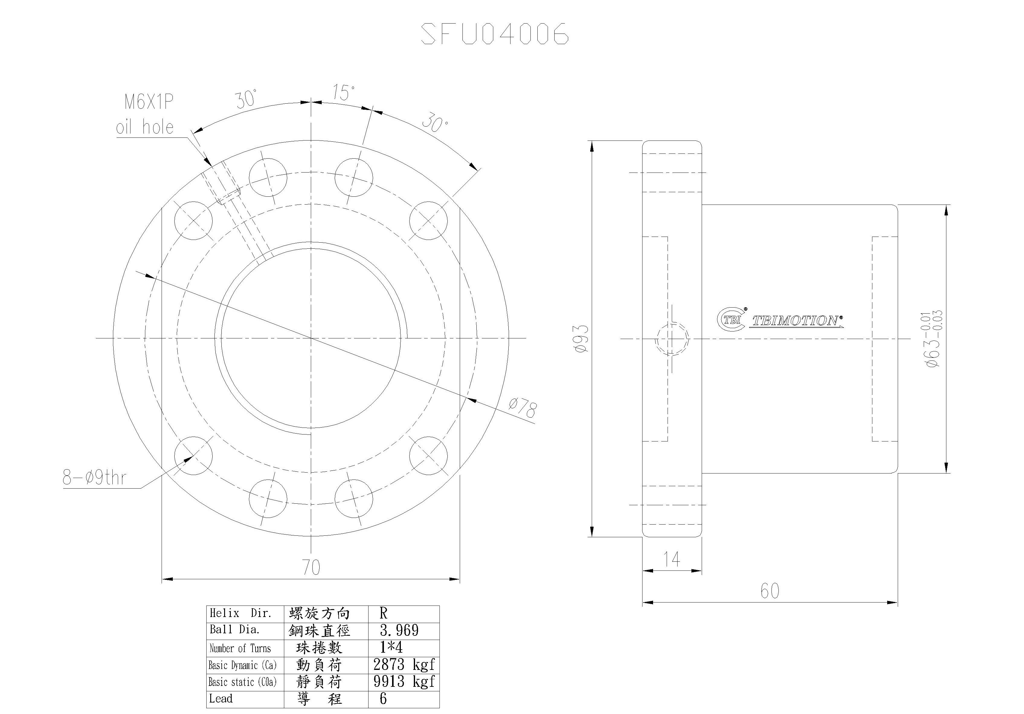 TBI滾珠絲桿SFU4005、SFU4006、SFU4008、SFU4010螺母尺寸圖示: