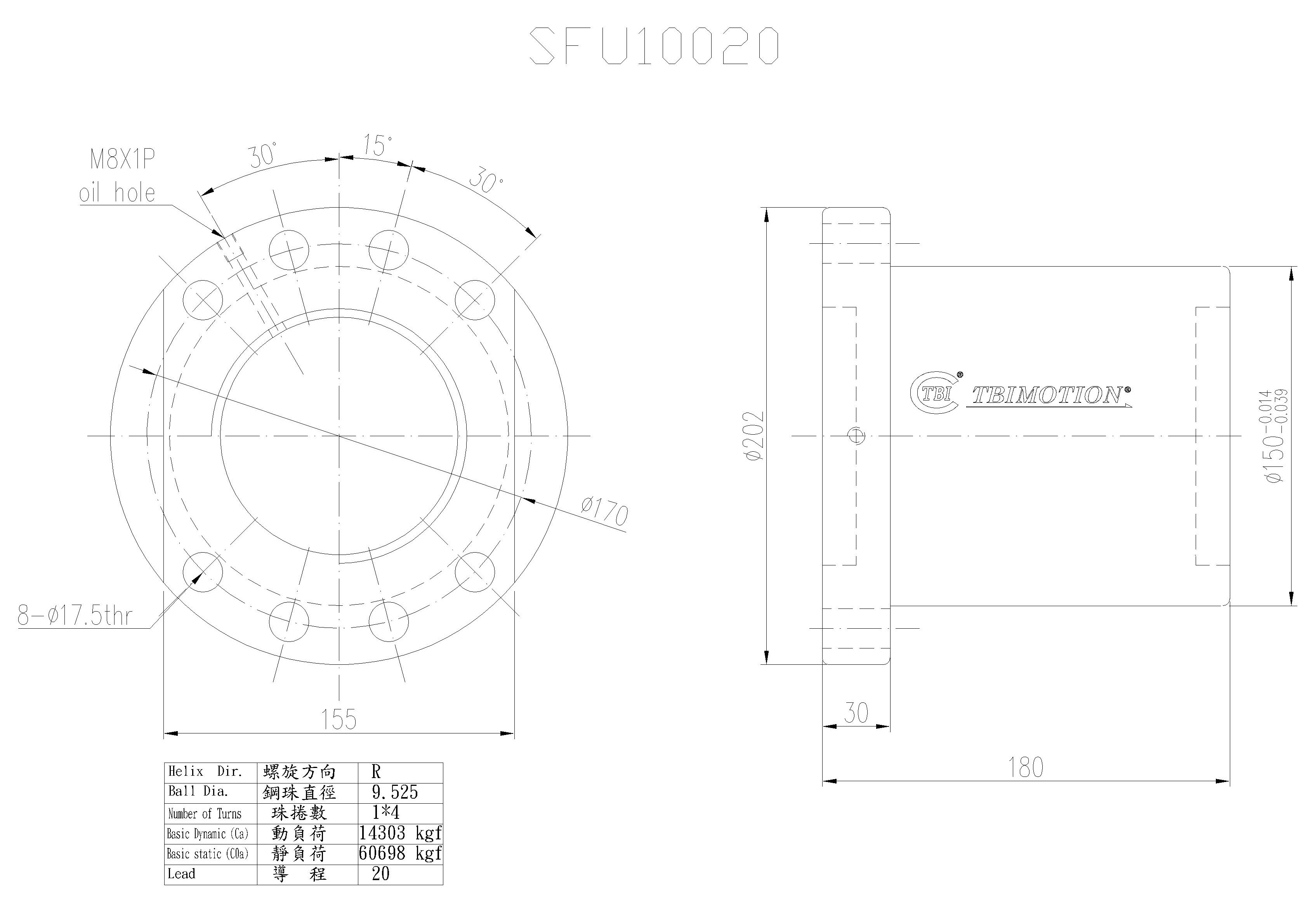 新聞中心ews CenterTBI滾珠絲桿SFU10020螺母尺寸圖示: