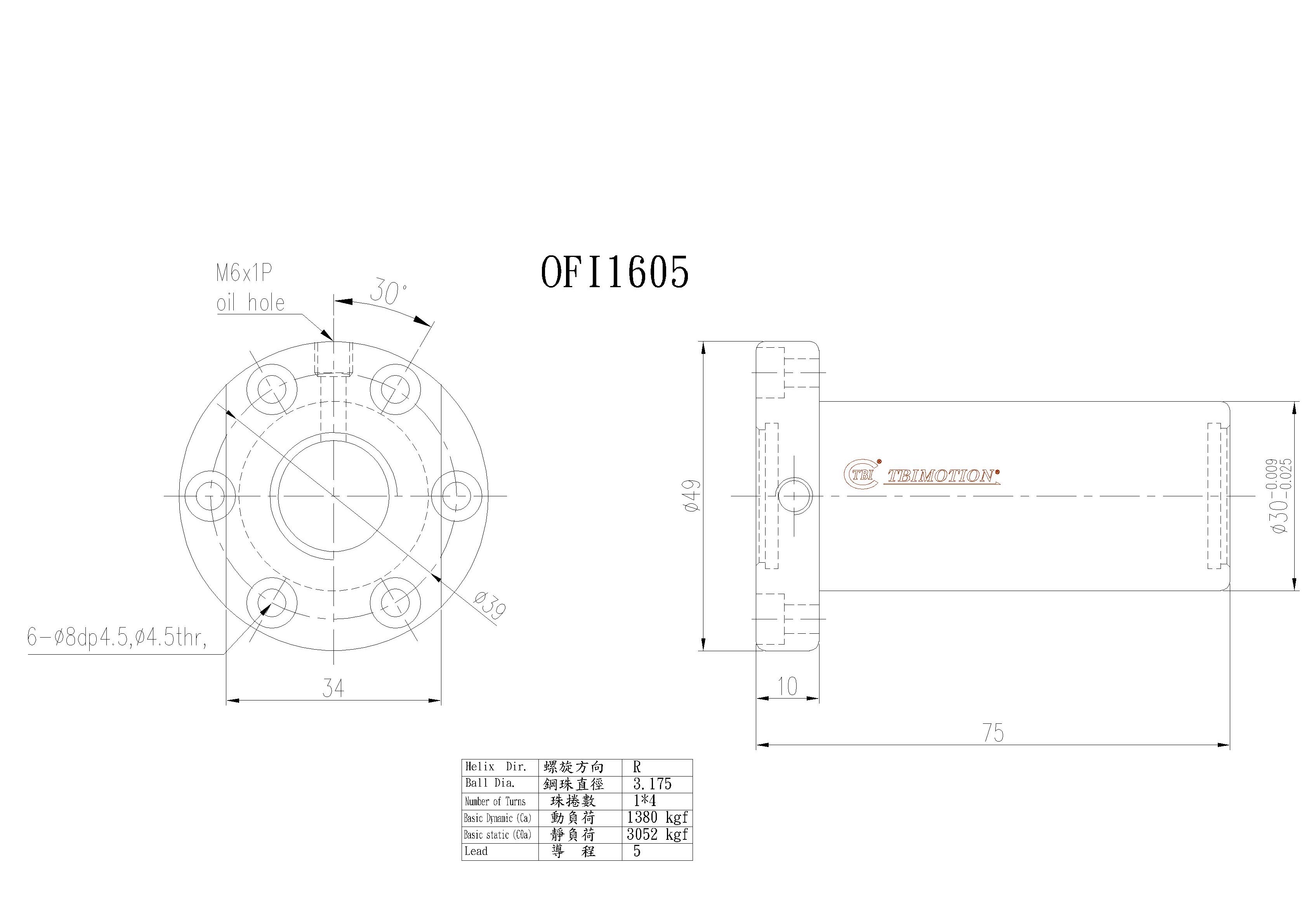 TBI滾珠絲桿OFI1605螺母尺寸圖: