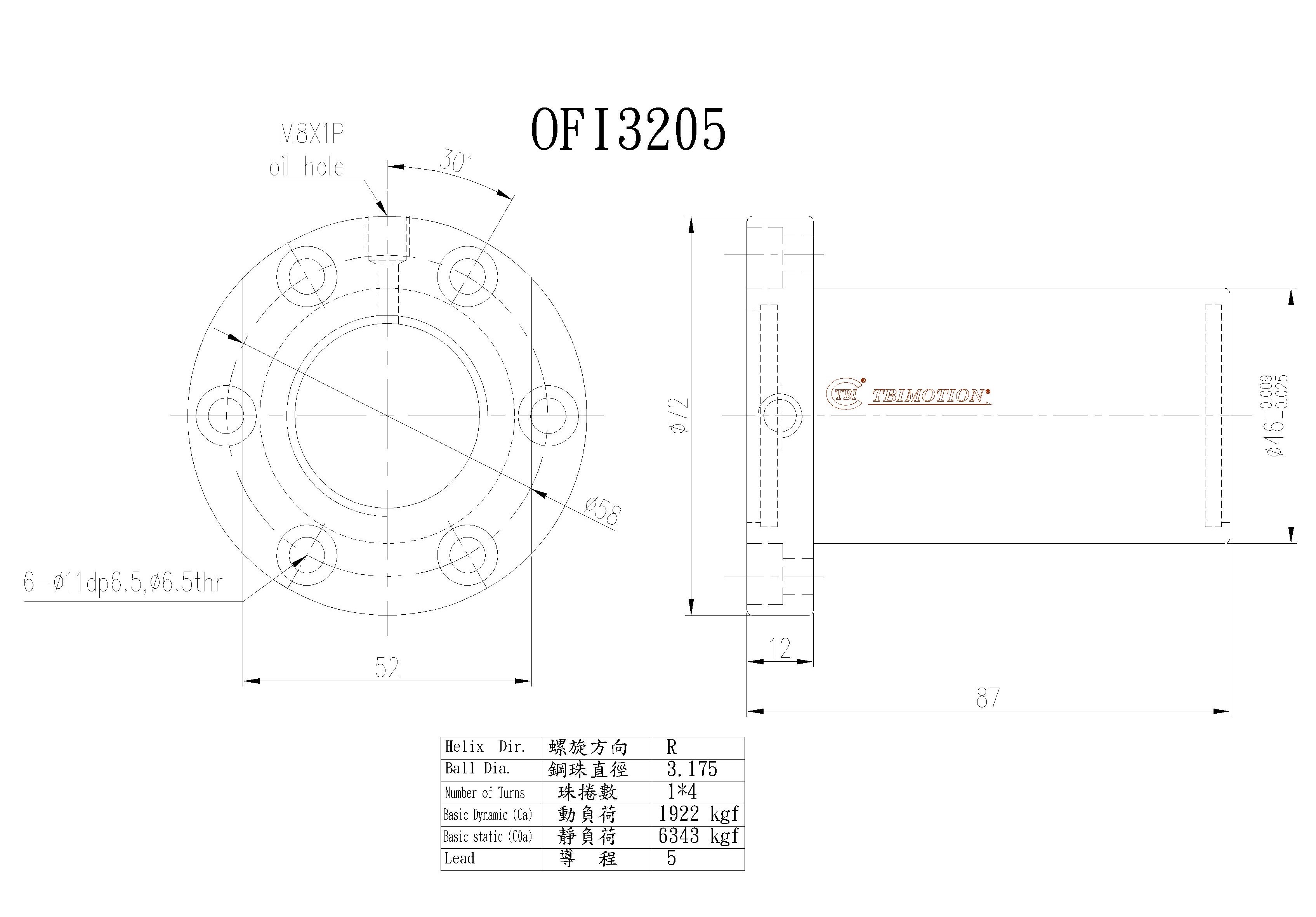tbi滾珠絲桿OFI3205、OFI3210螺母尺寸圖示: