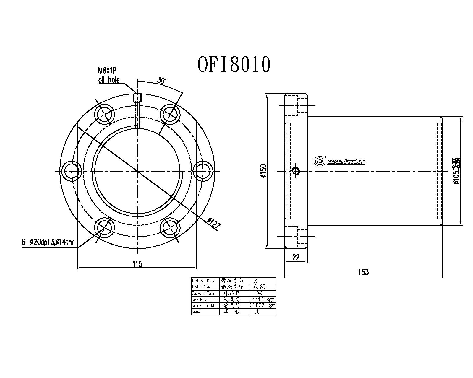 TBI滾珠絲桿OFI8010螺母尺寸圖示: