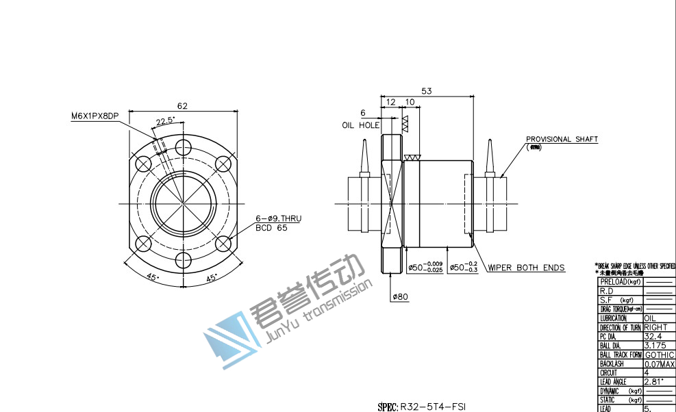滾珠絲杠規(guī)格:R32-5T4-FSI-0.05