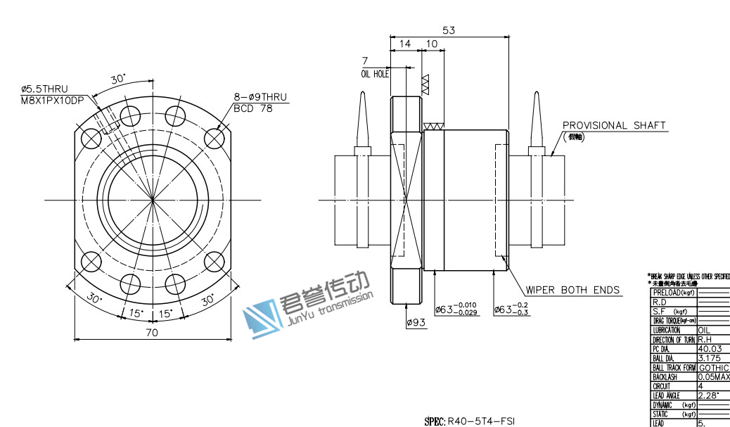 滾珠絲杠規(guī)格:R40-5T4-FSI-0.05