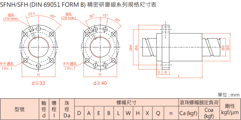 SFH系列為高速?gòu)?qiáng)化防塵型滾珠螺桿,具有高速性、高負(fù)載及高剛性等特性,具有高順暢度,且SFH的特殊設(shè)計(jì)使其防塵效果大幅的提升,循環(huán)結(jié)構(gòu)的強(qiáng)化使其更適合在高速的環(huán)境下運(yùn)作。