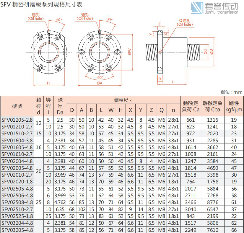 型號示列:SFVR1210C1D-DFC7-1000-PO 重載型SFV系列滾珠絲桿螺母、外循環(huán)