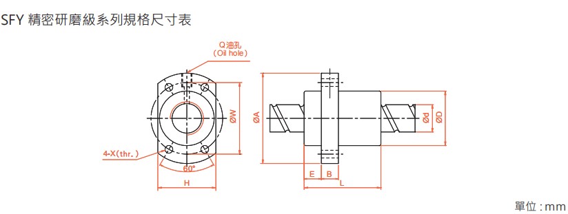 SFY系列為高速?gòu)?qiáng)化防塵型滾珠螺桿,具有高速性、高負(fù)載及高剛性等特性,具有高順暢度,且SFY的特殊設(shè)計(jì)使其防塵效果大幅的提升,循環(huán)結(jié)構(gòu)的強(qiáng)化使其更適合在高速的環(huán)境下運(yùn)作。設(shè)計(jì)提升其穩(wěn)定性、負(fù)載以及使用壽命。