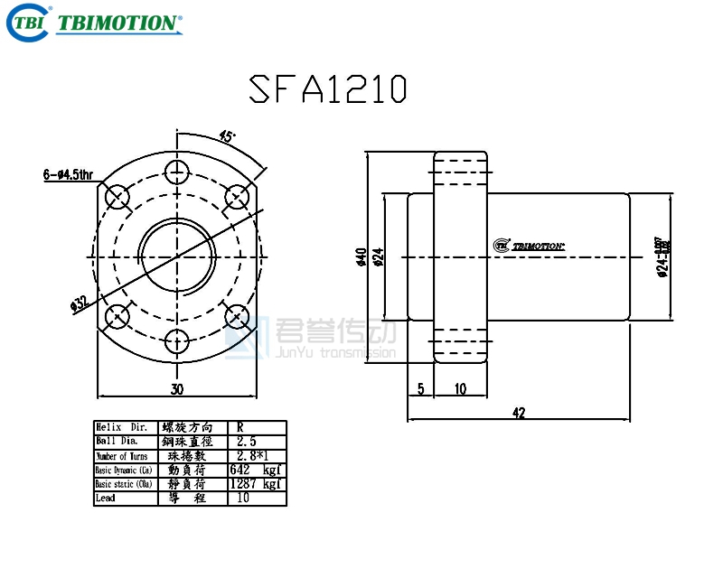 TBI滾珠絲桿SFAR1210A1D圖示: