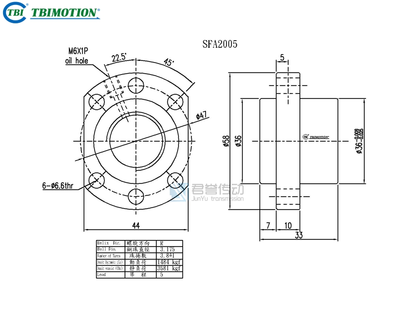 tbi滾珠絲桿SFAR02005C1D螺母尺寸圖示: