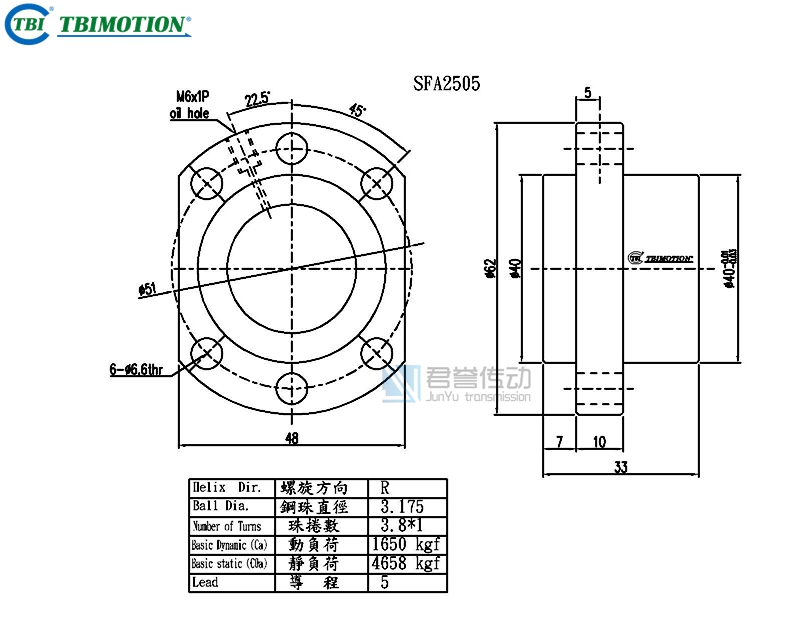 臺(tái)灣tbi滾珠絲桿SFAR02505C1D尺寸圖示: