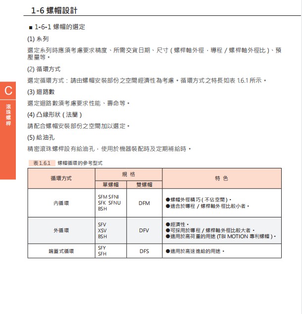 tbi滾珠絲桿SFAR05050A1D螺母設(shè)定: