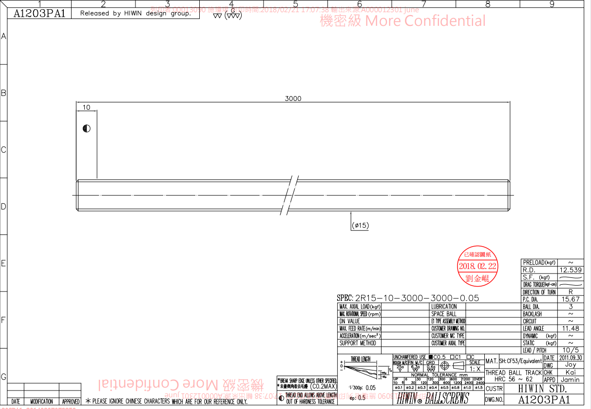 臺(tái)灣上銀滾珠絲桿2R15-10B1-FST-0.05,軋制絲桿C7級(jí)精度,重復(fù)定位精度0.05,絲桿直徑15,導(dǎo)程10,珠徑3.175,動(dòng)負(fù)荷810KGF,靜負(fù)荷1620KGF.