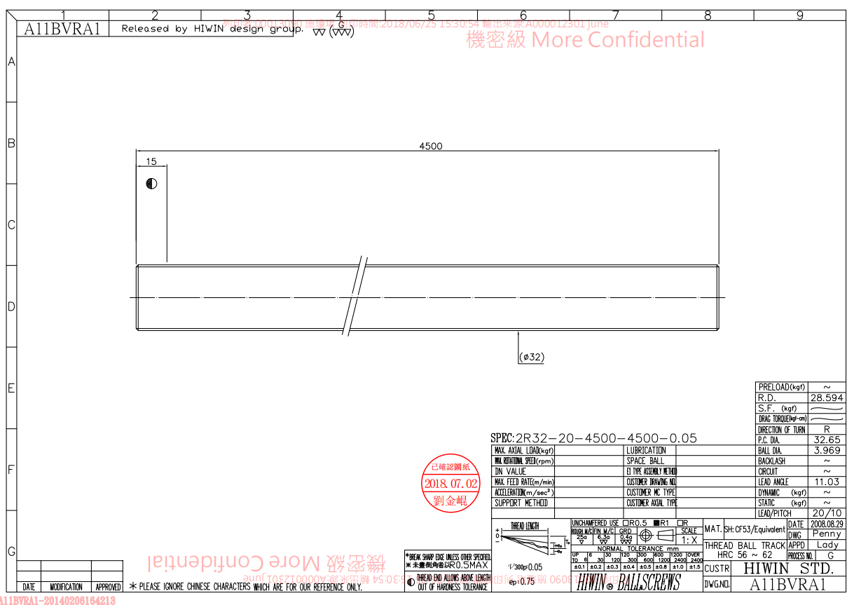 上銀滾珠絲桿2R32-20-4500-4500-0.05