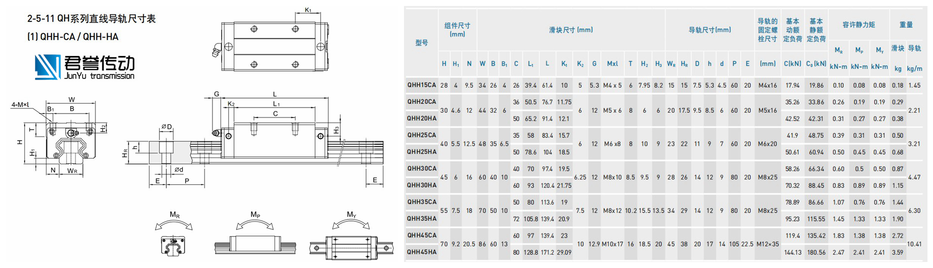導(dǎo)軌精度:C、H、P、常用精度等級、P為高級、常用為C級精度.