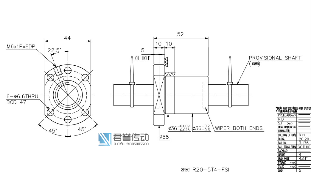 滾珠絲杠規(guī)格:R20-5T4-FSI-3000-0.05